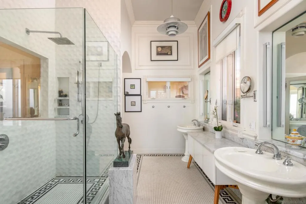 Offered for the first time, the most iconic oceanfront home in all of Carlsbad—an authentic Italian-inspired villa where timeless elegance meets rare beachfront ownership. Nestled within the coveted Terramar community, this extraordinary 6 bedroom estate offers a once-in-a-lifetime opportunity to not only live at the edge of the Pacific but to own the beach itself. Wake up to the sound of waves lapping just beyond your terrace and enjoy sun-drenched mornings with ocean breezes and panoramic coastal views. Designed for luxurious coastal living, the home features dual oceanfront primary suites, including one with a lavish “See to the Sea” oversized shower. A separate 2 story private-entry casita with ocean views adds flexibility for guests, multigenerational living, or income potential. Inside the gated entry, you’re greeted by a lush, romantic courtyard with a bubbling fountain, pond, colorful bougainvillea, and a stunning curved fireplace—setting the tone for the charm and serenity found throughout. Multiple garden vignettes and inviting outdoor seating areas create the feel of a boutique resort, ideal for quiet reflection or entertaining by the sea. Rich wood floors, graceful architecture, and expansive, light-filled living spaces complete the interior, blending old-world character with modern comfort. Voted Home of the Year in 1991 by San Diego Home and Garden, this landmark property isn’t just a residence—it’s a coastal legacy. Live the lifestyle others only dream about—beauty, privacy, and unforgettable oceanfront memories await.
