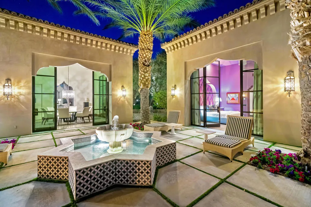 Casbah Cove is not a conventional residence. It is a collectible architectural estate, offered to a buyer who values rarity over conformity.Privately positioned within the gates of BIGHORN Golf Club, this Moroccan-inspired compound was conceived as an immersive environment a place where architecture, light, and atmosphere work together to create an experience that cannot be replicated.At the heart of the home is a dramatic open-air courtyard crowned by an automated retractable glass roof, allowing the residence to transform from intimate sanctuary to open-sky entertaining venue at the touch of a button. This feature alone would be extraordinarily difficult if not impossible to recreate under today’s construction, cost, and approval conditions.The estate spans approximately 12,000 square feet across the main residence and detached guest suite. The interiors were intentionally designed as a canvas an opportunity for a discerning owner to personalize and elevate, rather than inherit someone else’s vision. This is not a turnkey home by design; it is an enduring framework for something truly bespoke.Outdoor living unfolds across multiple terraces, tranquil water features, two resort-style pools, and secluded entertaining areas, all framed by mountain backdrops and sweeping desert skies. At twilight, the property reveals its true character fire, water, and architecture converging into an atmosphere that feels more like a private riad than a traditional desert estate.Replacement cost for a property of this scale, complexity, and architectural ambition would far exceed the current offering price, before accounting for years of design, approvals, and construction.Casbah Cove is offered to a buyer who understands that truly unique properties are not found they are recognized.The seller does not need to sell and is selectively considering opportunities that reflect the rarity of the asset.Shown by appointment only.