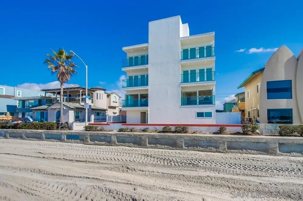 RARE TROPHY ASSET—the only 6-unit, 4-story oceanfront building in Mission Beach with no HOA and white papers in hand for a condo map. Six identical 2 BR / 2 BA ~1,100 SF residences span an irreplaceable 30 FT-wide lot, crowned by the ONLY 2 true 4th-floor penthouses in MB—soaring above the 30-ft height cap for panoramic surf-to-skyline views AND the bay! From studs out, the property underwent a $2 M+ fully permitted rebuild (2023): new roof, plumbing, electrical, HVAC, structural beams and framing, impact windows, glass sliding doors, smooth stucco, designer kitchens, spa baths, Euro-oak floors, and glass balcony railings that vanish into the horizon. Garage yields 8 on-site parking spaces (All single no tandem) plus shared oceanfront patio directly on the boardwalk AND each unit has its own oceanfront balcony + back balcony facing the bay. Operational flexibility & upside: • Vacation-rent all 4 upper units for maximum cash flow—pro formas exceed $760 K GSI. • Maintain existing two long-term leases in 2nd-floor units to preserve Tier-2 STR permits, while operating the top four as premium short-term rentals. • Sell-off strategy: activate the condo map and disposition units individually in a high-velocity market hungry for turnkey new build oceanfront condos. No HOA dues, no deferred maintenance, and no comparable site left to build. Whether held as a legacy multi-family asset, operated as a boutique luxury rental stack, or condo sales for immediate profits, 3449 Ocean Front Walk offers a once-in-a-generation chance to control the trophy of Mission Beach.