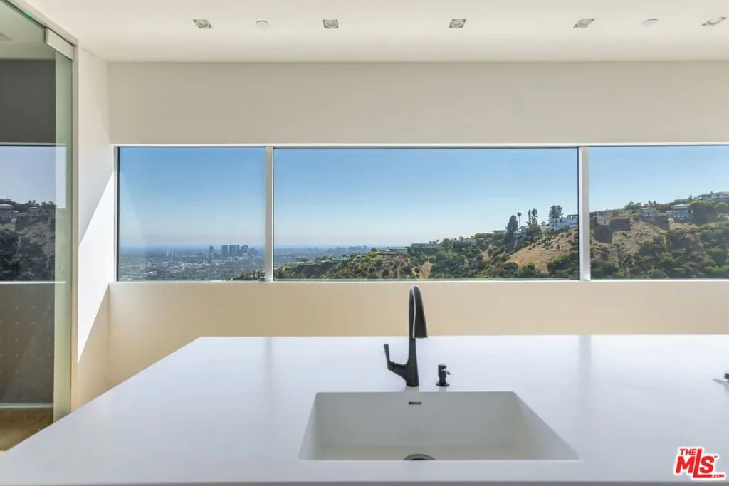 Perched above the city with unobstructed panoramic views from Downtown Los Angeles to the Pacific Ocean and Catalina Island, this contemporary masterpiece defines elevated living. Located just moments from the iconic Sunset Boulevard, the home offers the rare combination of architectural distinction, refined design, and everyday comfort.With 4 spacious bedrooms and 6 elegantly appointed bathrooms, the layout is designed for both grand entertaining and relaxed day-to-day living. The oversized primary suite is a true sanctuary featuring dramatic floor-to-ceiling glass that captures breathtaking views, two luxurious full bathrooms, a large custom walk-in closet, and a private balcony perfect for morning coffee or sunset wind-downs.At the heart of the home, a stunning Boffi kitchen is outfitted with top-of-the-line Miele and Wolf appliances, ideal for hosting with both style and ease. The open-concept living areas flow seamlessly to the expansive pool deck, where sweeping city-to-ocean views set the stage for unforgettable entertaining or quiet relaxation under the stars.Additional highlights include a custom wine cellar, a spa-like steam shower, and smart home features such as Dom Vision automation, in-wall iPads, built-in surround sound, electronic shades, and sleek Boffi vanities and fixtures throughout.Whether you’re hosting a lively soire or enjoying a private moment with the skyline, this home offers a lifestyle that’s as luxurious as it is livable.