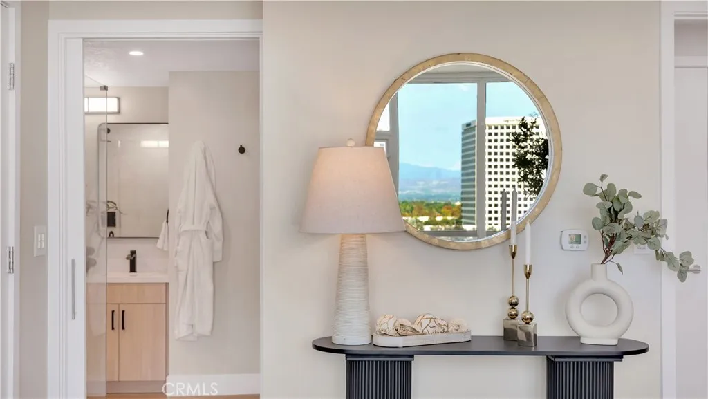 Elevated luxury, panoramic views, and bespoke design await at this fully reimagined 12th-floor corner residence in the exclusive, guard-gated enclave of Marquee at Park Place. Newly transformed through a complete, top-to-bottom renovation, this 3-bedroom, 2-bathroom home is a statement in transitional elegance and modern sophistication. From the moment you enter, you’re greeted by walls of glass that flood the open-concept living space with natural light and frame sweeping vistas of the city skyline and Saddleback Mountains. The newly designed chef’s kitchen is a culinary showpiece—featuring all brand-new, top-of-the-line appliances, including a Sub-Zero refrigerator, Wolf range, and Cove dishwasher—complemented by new sleek quartz countertops, custom cabinetry, and warm wood flooring throughout. Spanning approximately 1,583 square feet, this home seamlessly blends form and function. Every surface and finish has been curated to reflect timeless luxury: from the organic textures and materials to the completely redesigned spa-like primary bathroom, outfitted with a new walk-in shower, new custom vanity, and designer fixtures and walk in closet with custom built ins. Both bathrooms showcase elevated details and craftsmanship that invite relaxation and indulgence. Step onto your private terrace to savor a glass of wine while enjoying uninterrupted city lights and mountain views—your personal retreat in the sky. Set within one of Irvine’s most desirable addresses, residents enjoy white-glove amenities including a 24-hour concierge and security, resort-style pool and spa, fitness center, media and conference rooms, outdoor BBQ areas, and a stylish resident lounge. HOA dues include water, gas, trash, and high-speed internet. Perfectly located near world-class shopping at South Coast Plaza, Fashion Island, Irvine Spectrum and fine dining and trendy restaurants, iconic Southern California beaches, UCI Health, Kaiser, and John Wayne Airport—this is modern urban living without compromise.