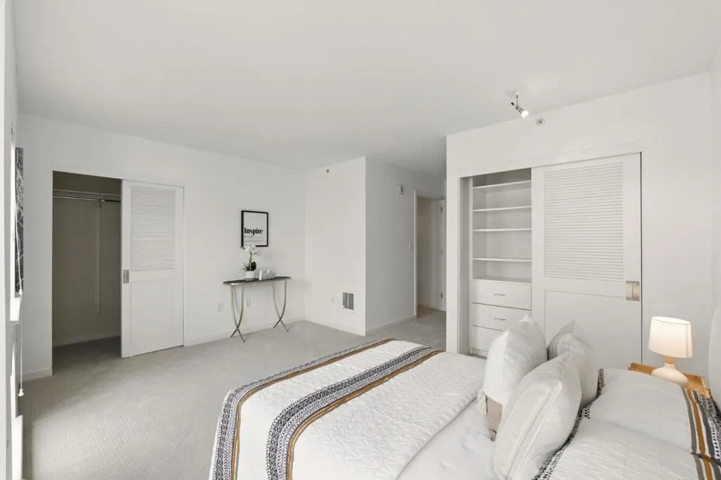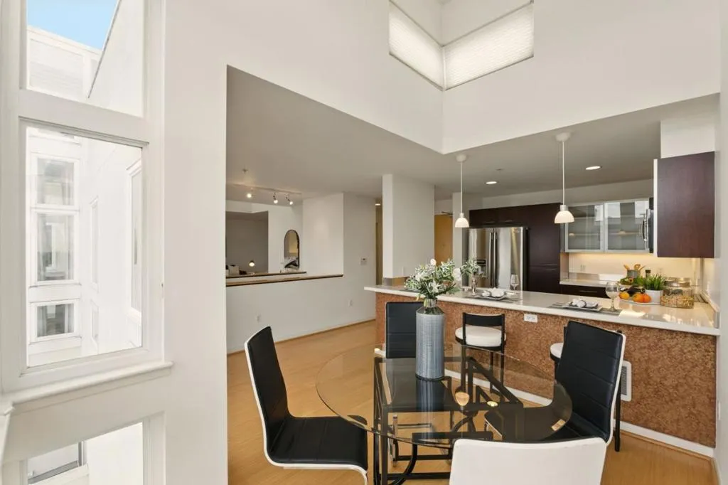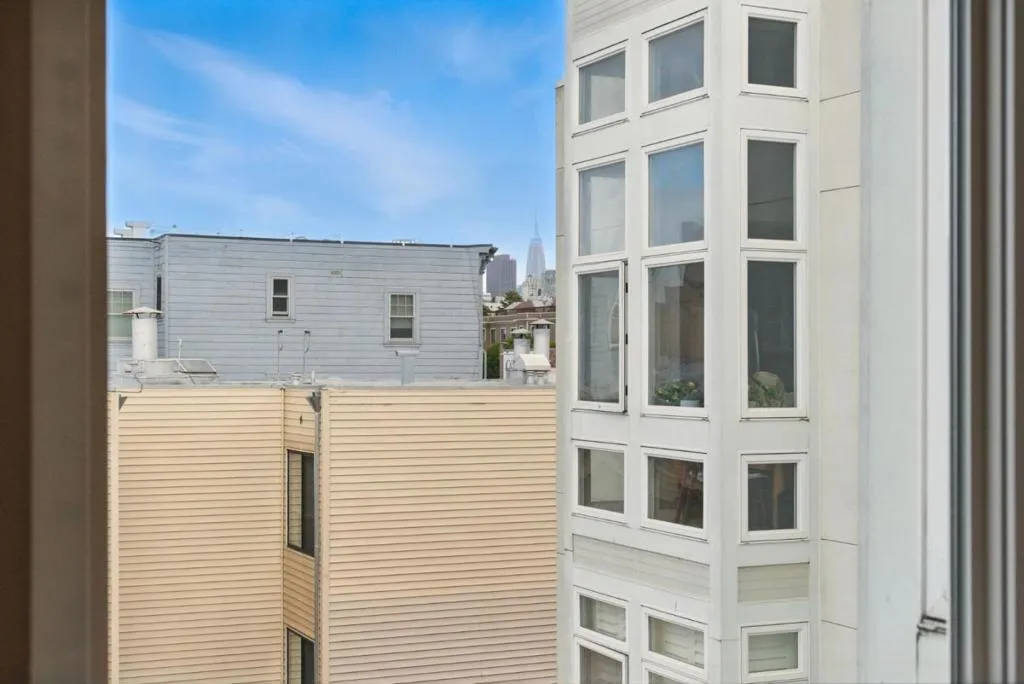 TOP FLOOR – HIGH CEILINGS -TONS OF NATURAL LIGHT. This home is a stylish top-floor condo in a boutique 2007 building. Step inside to soaring ceilings, warm bamboo floors, and a cozy gas fireplace that sets the tone for relaxed elegance. The open-concept living space flows seamlessly into a chef-friendly kitchen with stainless steel appliances, generous counter space, and abundant storage perfect for hosting friends or enjoying a quiet night in. A convenient half bath rounds out the main level. Downstairs, you will find two spacious bedrooms with its own ensuite bath plus in-unit laundry. The primary suite opens onto a private terrace, your personal outdoor retreat. Enjoy spectacular ocean and Angel Island views from your perch above the city. Extras include garage parking for one car, an oversized private storage room, and access to a tranquil shared courtyard. From here, you are just a short stroll to Chestnut Streets vibrant cafes and restaurants, Crissy Field, Fort Mason, The Presidio, and Marina Green. The Golden Gate Bridge, Palace of Fine Arts, and Fishermans Wharf are practically in your backyard. Don’t miss this rare opportunity!