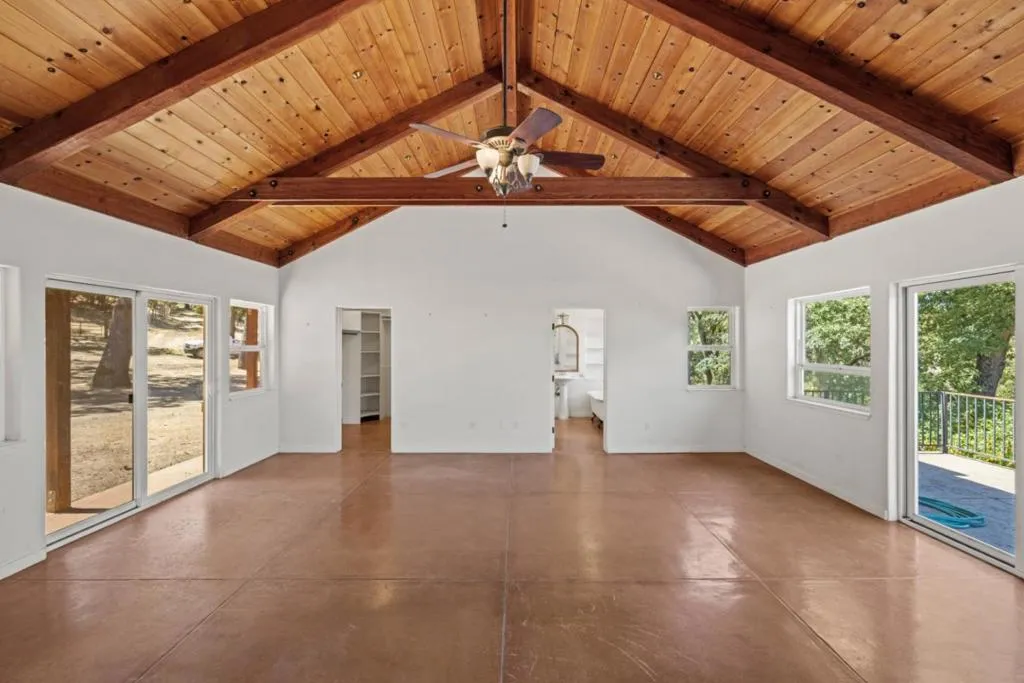 This fantastic must see home with guest facility on 25 view acres is perfect for entertaining and includes a 4 stahl plus barn with numerous corrals. The main house has a 1,200 square foot living room, dining room, kitchen, wet bar and view deck combination. Excellent for family get togethers and social events. The separate unit has a private entrance, bedroom, bathroom, open kitchen/living room with outstanding views. This property is a very special beautiful private place with unbelievable views of the surrounding mountains. Laurel Springs is a shared private road. Quality home and horse facility located in some of the prettiest country in the county. This house has been coated with concrete stucco for fire resistance. The land surrounding the house and all other structures have been maintained according to the requirements by Californias Fire Laws for a defensible barrier.