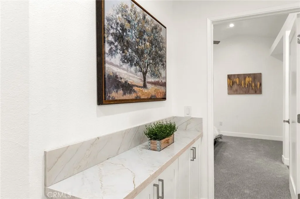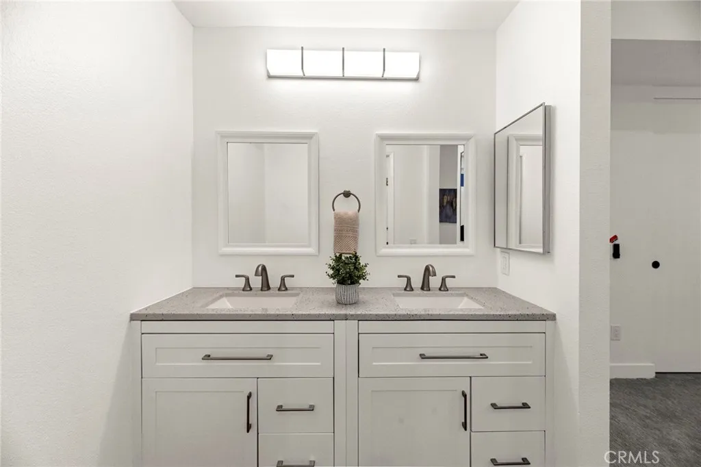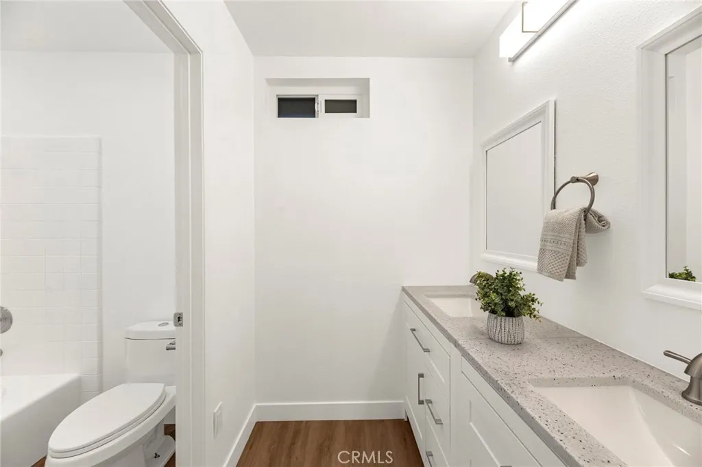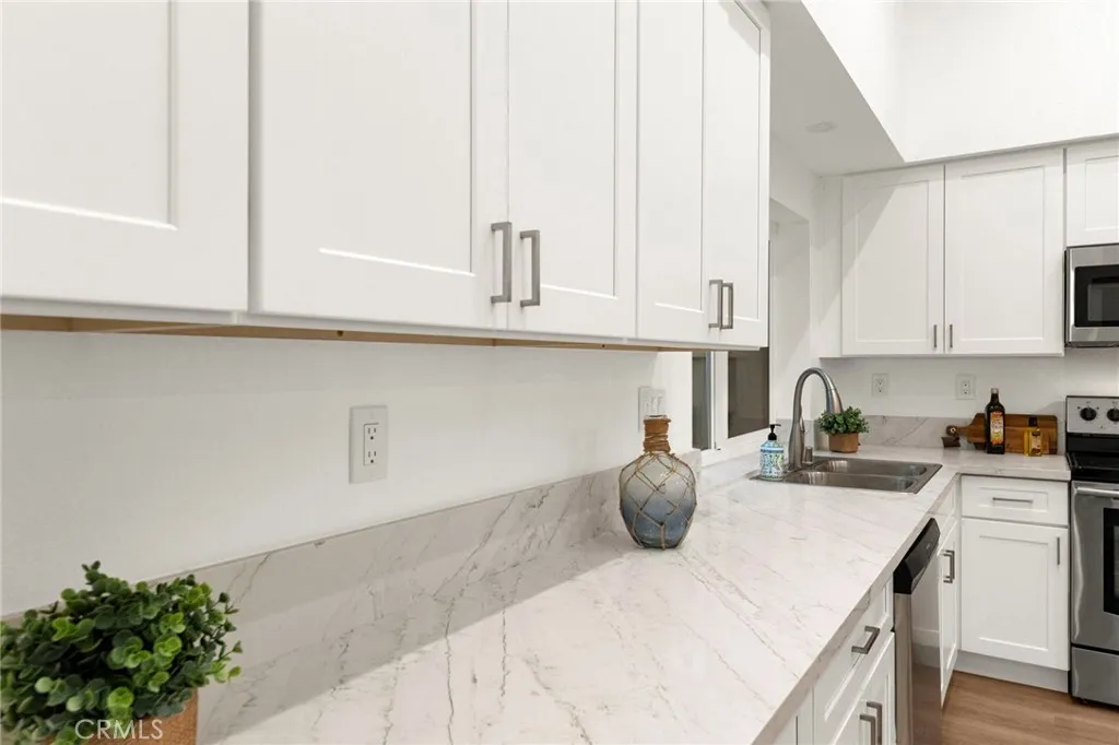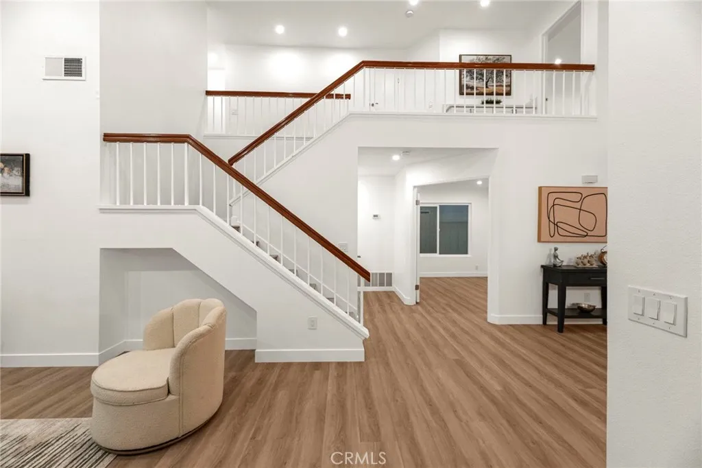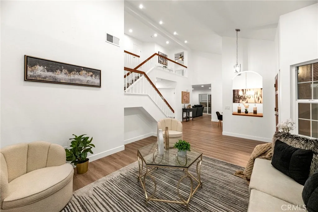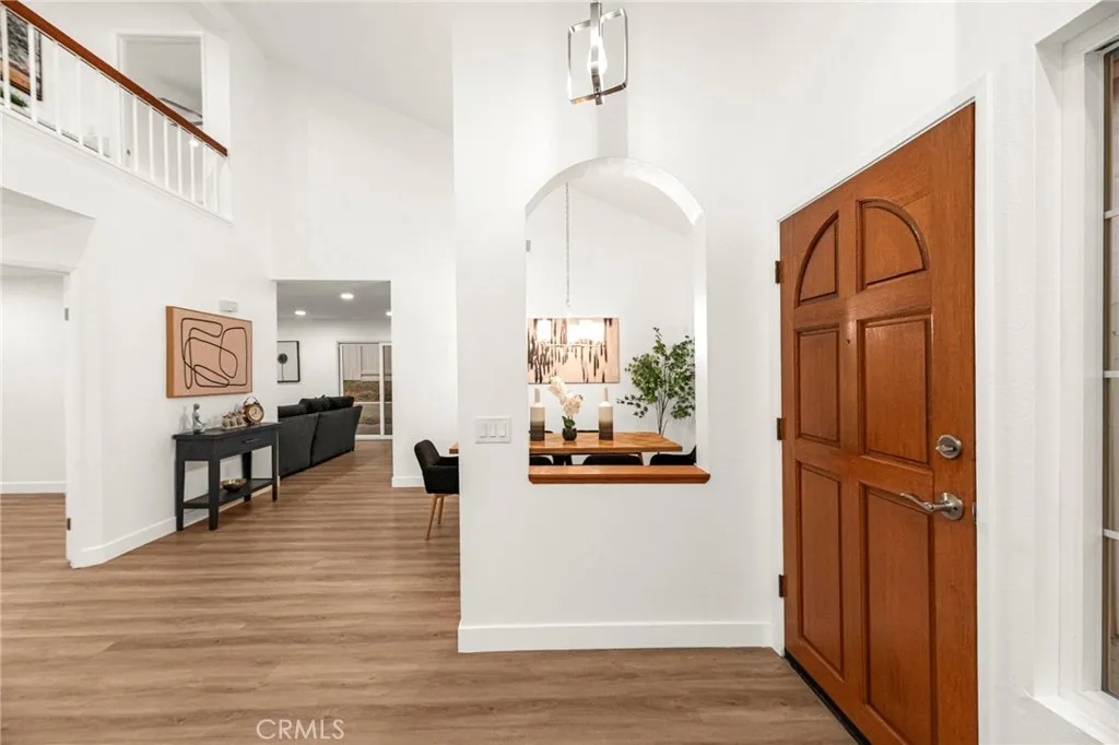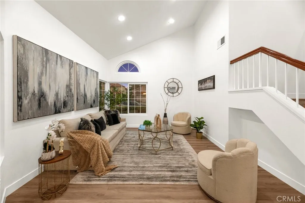 Stunning Fully Remodeled 4-Bedroom, 3-Bath Home in Coveted Park Village! Step into style and comfort in this beautifully updated home located in the highly sought-after Park Village neighborhood. From the moment you enter, you’ll be greeted by soaring vaulted ceilings and an abundance of natural light that accentuates the open, airy floor plan. The formal living room flows seamlessly into the separate dining area, all enhanced by the newly upgraded luxury vinyl plank flooring throughout. The fully remodeled kitchen is a showstopper—featuring crisp white cabinetry, matching quartz countertops, brand-new stainless steel appliances, and vaulted ceilings that add to the sense of space. It overlooks the spacious family room, where a stone-faced fireplace creates a cozy focal point and a large sliding glass door opens to the private backyard. Ideal for multigenerational living or guests, the main floor includes a full bedroom and a full bath. Upstairs, you’ll find two additional guest bedrooms with ceiling fans and ample closet space, along with the generous primary suite. The primary retreat boasts a deep walk-in closet, dual vanity sinks, a large soaking tub, and a separate shower. The backyard offers privacy and relaxation, complete with an Aluma-wood patio cover, grassy area, retaining wall, and freshly painted fencing—perfect for entertaining or unwinding. Additional upgrades include: all-new dual-pane windows, newer roof, recessed lighting throughout, fresh interior paint, upgraded baseboards and hardware, modern appliances and so much more! Located in a quiet, family-friendly community with excellent schools, low HOA, no Mello-Roos, and a prime location—this home is the total package. Don’t miss your chance to own this picture-perfect gem!