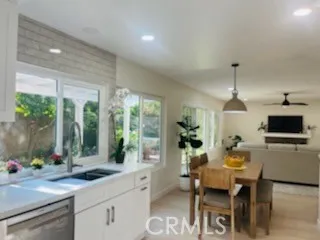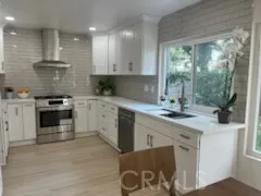 BACK ON THE MARKET …… PRICE REDUCED …. OPEN HOUSE SATURDAY 10/18/25 1p-4:00p. SUNDAY 10/19/25 1pm – 4pm. Have a light and breezy summer! Move-in ready refreshingly fully renovated and prime, family friendly home in well-located and maintained Cerritos “The Courts” neighborhood. This 4 bedroom 2 1/2 baths home is facing East and the largest model (Wimbledon floor plan) located at the end of a quiet cul-de- sac. …**** NOW living room, dining room, kitchen dining area, family room are elegantly, uniquely and nicely interior decorated. ****** Truly immaculate and much done to this superb home with large living room, a formal dining room that opens to an inviting sundeck. Another family dining room is between the kitchen and large family room with cozy fireplace. Upgrades include streamlined efficient recessed lighting throughout, new kitchen appliances, Bosch gas range, range hood and dishwasher; custom cabinetry, quartz countertops in fully renovated kitchen and bathrooms, updated vanities, appealing fresh paint throughout, and modern manufactured quality vinyl wood-like floors. Direct access to large 2 car garage, with washer-dryer hook-up. Newly built patio is partly shaded by fruit trees: sweet and juicy navel oranges, Fuyu Persimmons plus a lemon tree. Right