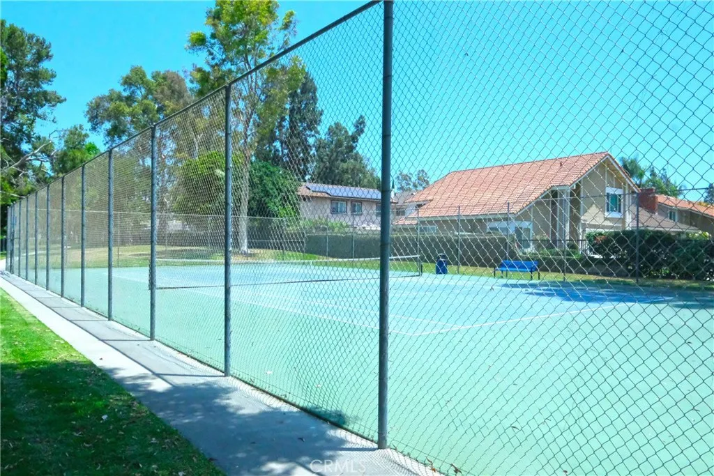 next to 2 professional-sized private tennis courts (infrequently used, total 4 in community), scenic tree-lined greenbelt amid walkways