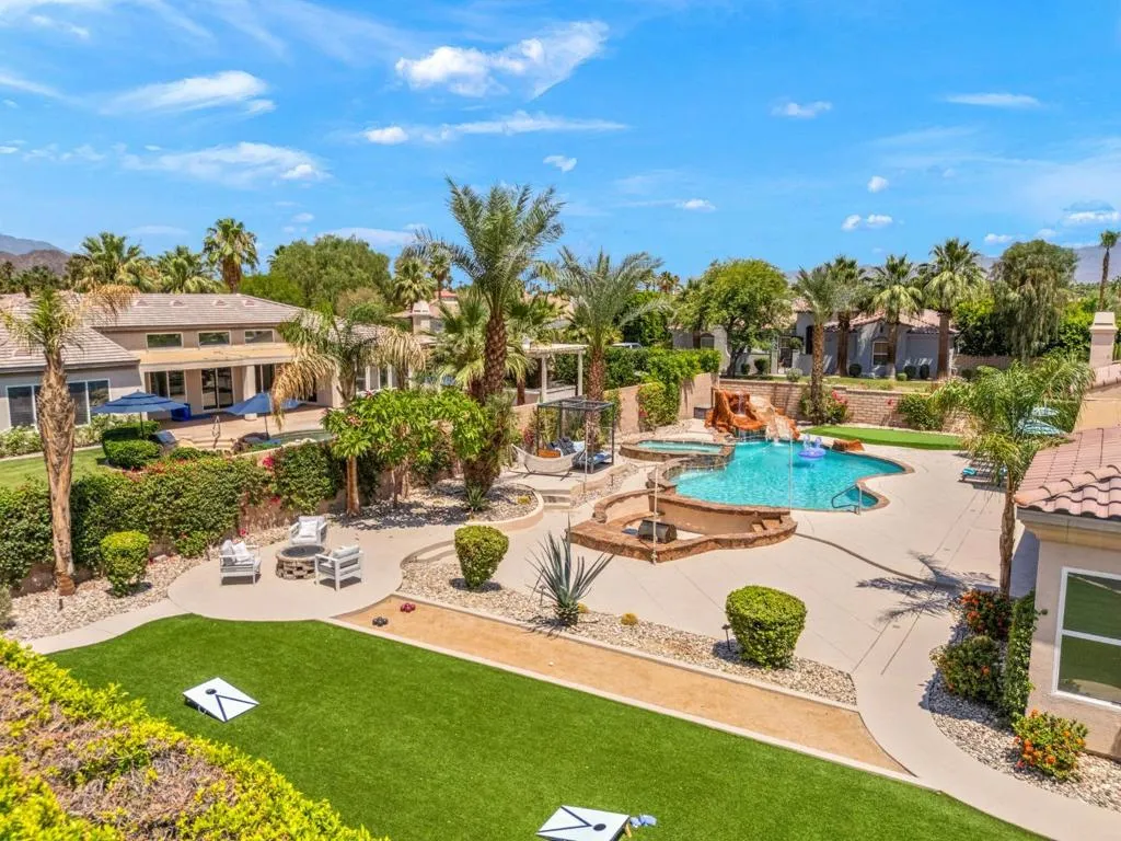 Desert Dream Oasis Resort Living at Home! Welcome to your turnkey desert retreat where luxury, comfort, and entertainment come together on a beautifully landscaped half-acre lot. This upgraded home blends open-concept living with soaring ceilings, natural light, new tile and wood flooring throughout. The chef’s kitchen is a showstopper, featuring high-end appliances, sleek countertops, and ample storage perfect for hosting or everyday living. Step outside to your private backyard resort, complete with a sparkling pool, spa, waterslide, outdoor kitchen, putting green, bocce court, and multiple areas to relax. The expansive primary suite is a serene escape with a spa-inspired bath, soaking tub, and a walk-in closet the size of a bedroom. Located in the sought-after gated community of Desert River Estates, this home offers a peaceful seclusion with easy access to shopping, dining, and recreation. Live everyday like you’re on vacation! Schedule a private tour today. Don’t Miss this one! Bonus – ALL Furnishings included!