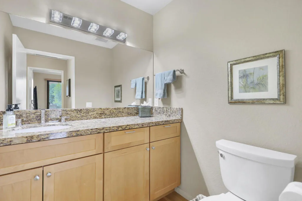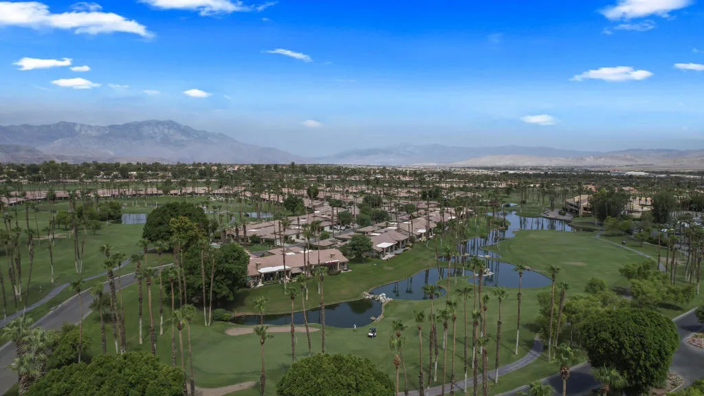 The perfect INVESTMENT PROPERTY!! This Ocotillo plan is a rare end unit. Enjoy a South facing private courtyard patio as well as a North facing 16th fairway view of the Championship Course. The unit is nicely renovated in soothing colors and a contemporary flair. Granite counter tops compliment wood cabinets, wood-like floors and wood blinds. Custom size refrigerator in kitchen. The primary bath features double sinks with a walk-in shower. Fully furnished per inventory. Garage feature epoxy floor and storage cabinets.This popular single-level floor plan is perfect for a full-time residence, weekend getaway, or investment property. Enjoy the resort lifestyle of Palm Valley CC, one of the desert’s most vibrant communities with 46 pools & spas, two Ted Robinson-designed golf courses, tennis & pickleball courts, a full-service clubhouse, spa & fitness center, and with dining venues. Come be a part of the Palm Valley Community known as the ‘Fun Club’ where friendships flourish and memories are made.