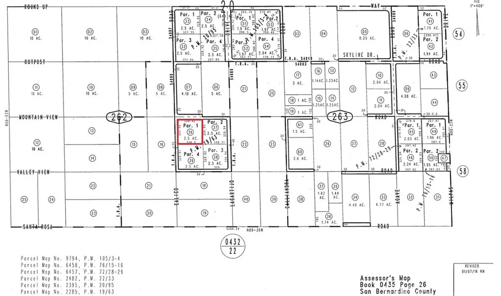 APN: 0435-262-36-0000 Coordinates: 34.417333, -117.113556 2.5 Acres for sale in San Bernardino County. This lot is located in the Apple Valley area on the corner of Mountain View Rd and Calico Road. Excellent location to build a home near other houses.