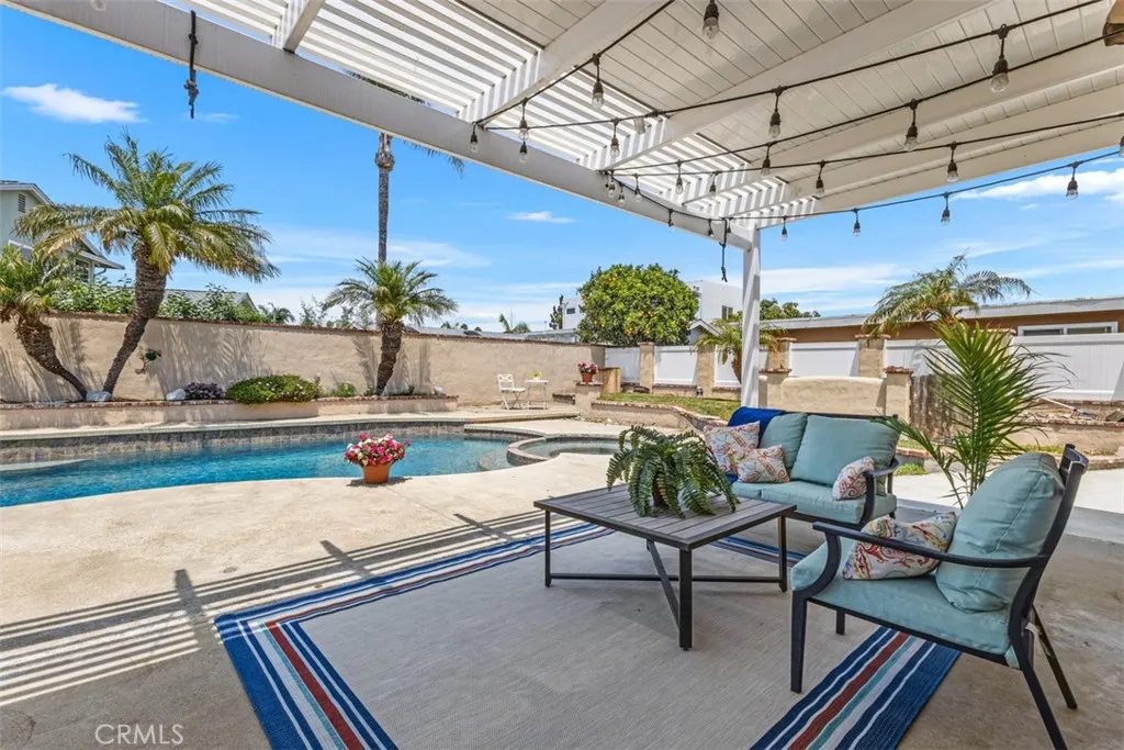 This beautifully updated, move-in ready 4-bedroom, 2.5-bath single-family home offers 1,812 square feet of thoughtfully designed living space on a generous 6,000-square-foot lot. Originally built in 1968 and significantly refreshed in 2025 with high-quality upgrades, including fresh paint and new electrical outlets throughout, this home blends modern style with untapped potential for those eager to personalize their space. The bright, open living area features stunning hardwood floors, a sleek electric fireplace, and dual-pane windows that fill the space with natural light. The kitchen, a highlight of the home, has been stylishly updated with elegant cabinetry and a built-in wine and beer cooler, perfect for hosting BBQs, holiday gatherings, or casual evenings with friends and family. Each bedroom offers a serene and inviting atmosphere with neutral tones, with some areas awaiting final touches to suit your vision. The bathrooms are fresh and functional, including a well-appointed powder room for guests, though minor updates could further enhance their appeal. Outside, the private backyard is designed for year-round enjoyment, featuring a newly resurfaced pool and spa ideal for entertaining or relaxing under the California sun. The upgraded main electrical panel supports modern energy needs, and the attached 2-car garage includes a 240V outlet for RV or EV charging, plus space for three additional vehicles in the oversized driveway. The home’s curb appeal shines with tropical palm trees, raised flower beds, and low-maintenance artificial turf that stays vibrant year-round. Located just minutes from top-rated schools, family-friendly parks, and vibrant local attractions like farmers markets, this move-in ready home offers a fantastic opportunity to enjoy Southern California living in a welcoming, dynamic neighborhood while putting your personal stamp on the finishing touches.