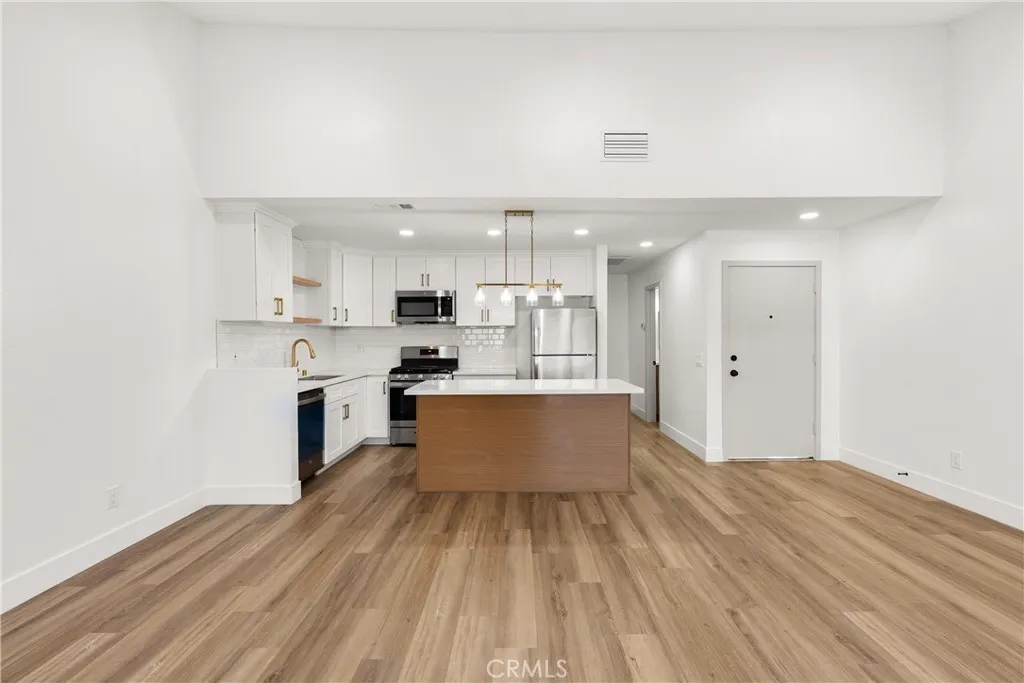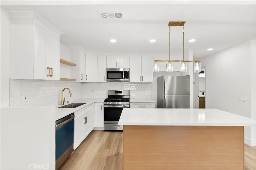 Every inch of this home has been upgraded with care and sophistication. The heart of the home—the kitchen—now boasts brand-new cabinetry, an open-concept layout, a large center island with quartz countertops, and all-new stainless steel appliances. Recessed lighting throughout the home highlights the fresh finishes, while new luxury vinyl plank flooring adds warmth and durability.