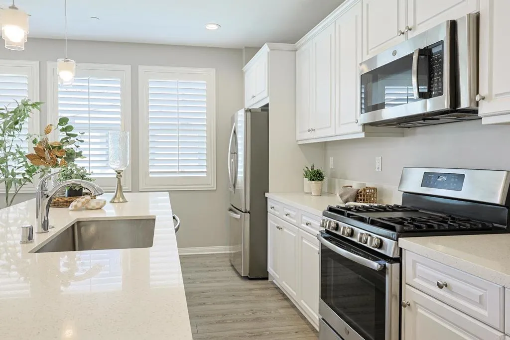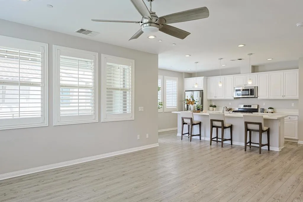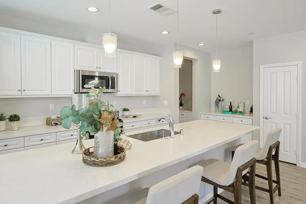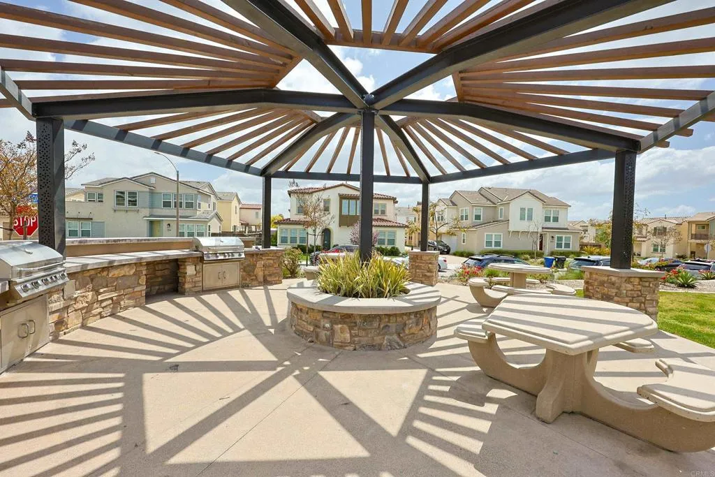 Dont miss the opportunity to own this stunning condo nestled in the highly sought area of Escaya Community .This beautiful exquisite designed home features an open, modern floor plan that warmly welcomes you with a gorgeous quartz island-perfect for entertaining .The kitchen boast matching quartz counter tops ,sleek white cabinets ,a spacious pantry ,and top-of-the line stainless steel appliances .The heart of this home is undoubtedly the kitchen it is the stylish centerpiece of the home which opens to a large ,bright spacious family room, designed for both comfort and sophistication.From there step out onto the covered terrace-a great outdoor retreat that boast an additional level of privacy on the second floor ,ideal for relaxing and enjoying a peaceful moment ,definitely a beautiful private outdoor retreat .This home offers three bedrooms two full bathrooms.The luxurious primary suite features a walk-in closet ,showcases dual sinks and walk -in shower .A wide hallway adds to the open feel of the home ,making the home more spacious, while elegant wooden shutters and dual pane windows allow for plenty of natural light throughout .Additional highlights include ample storage cabinets in the laundry room (conveniently located near the bedrooms),Bluetooth pre-wiring ,and indoor ring security cameras .The two car garage offers tank-less water heater, custom built-in storage racks and is wired for electric vehicle .And- bonus-SOLAR panels installed in January 2021 are fully paid off. WOW cant leave out, outdoor enthusiast will love the communities many amenities, including parks, scenic walking trails, a community pool, a clubhouse with a gym and resort style pool, and charming nearby shops, while enjoying your walks to your nearby coffee shop .The Escaya community is truly a haven for leisure and lifestyle–come see why you’ll be proud to call it home !