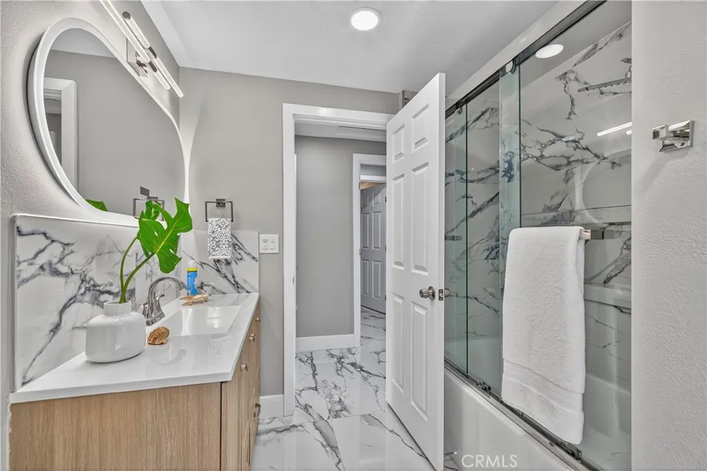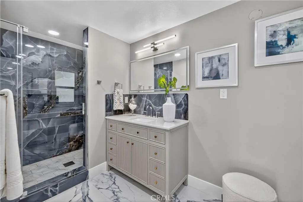 The backyard has been transformed into a true retreat, featuring a newly resurfaced pool with pebble finish, brand-new pool equipment and heater, a cozy fire pit, sitting area, and a new covered patio—all surrounded by impeccably landscaped grounds. The fourth bathroom lies between the house and garage for your backyard pool guests.