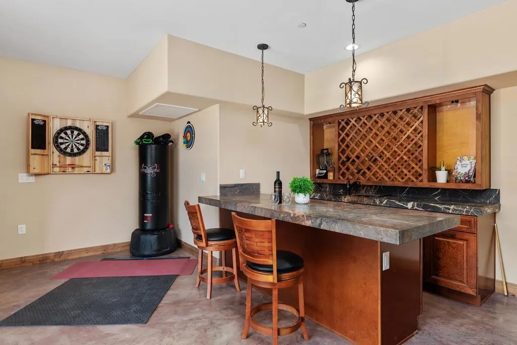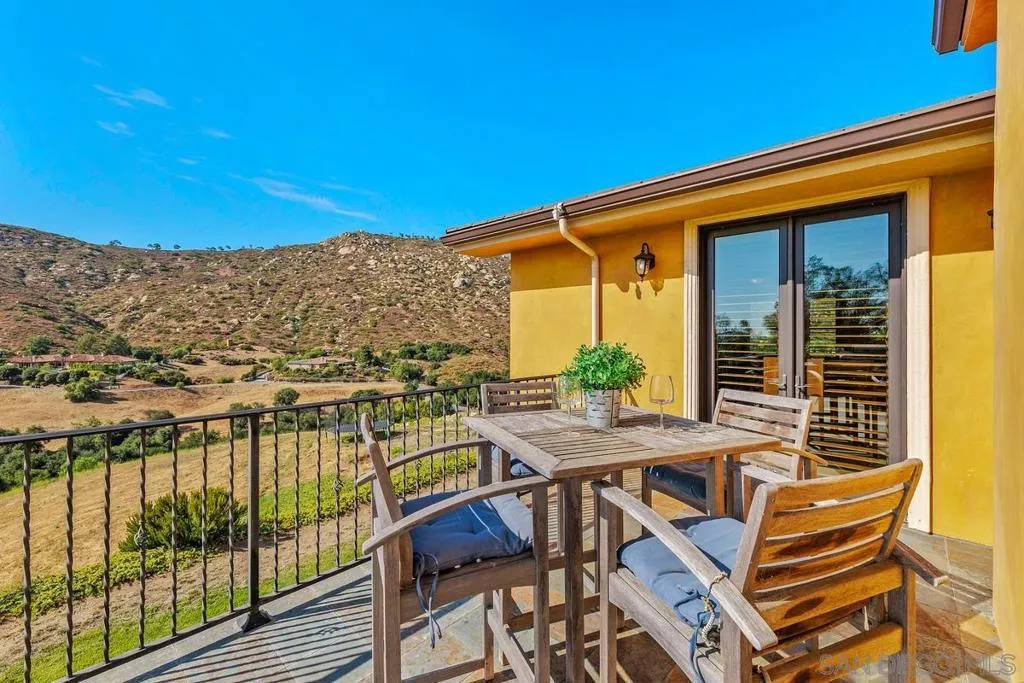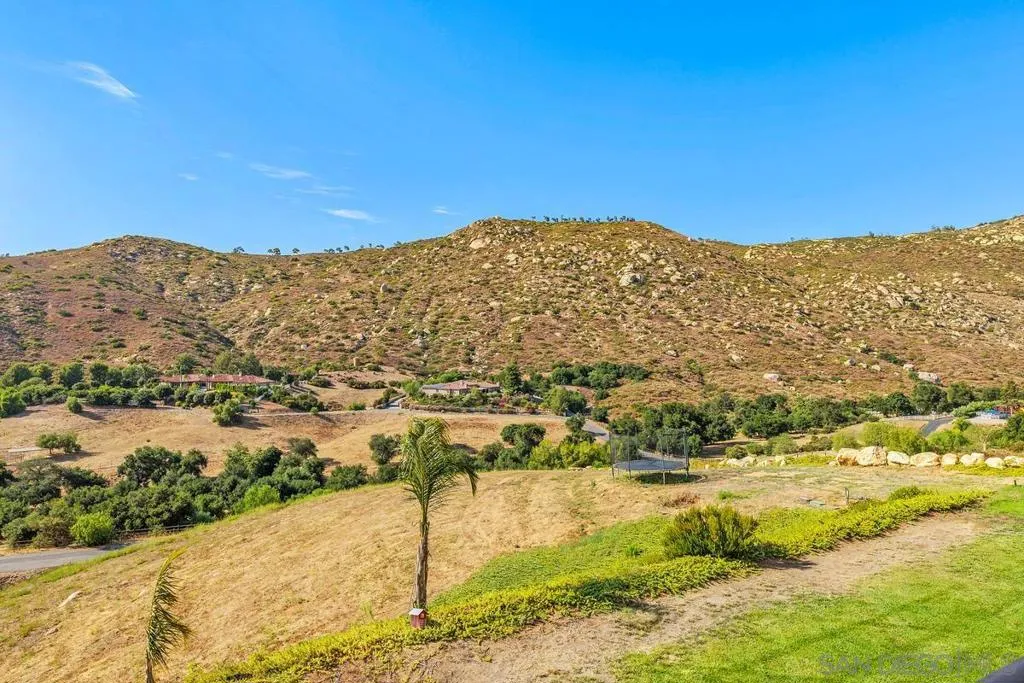 Newly constructed in 2021, this sprawling estate boasts 5+ acres and has been meticulously design-built to blend spaciousness and functionality. This property is nestled in the mountains of prestigious Old Coach Estates and just a stone’s throw away from award winning Maderas Golf Course. Breathtaking 360-degree views of the surrounding mountains create an ideal backdrop for gatherings, quiet relaxation and much needed privacy to escape the fast pace of today. Every detail of this custom-built home exudes craftsmanship and elegance making it a haven for those who appreciate the finer things in life. Upon entering, you are greeted by an expansive interior where no expense has been spared. Zoned AC ensures comfort year-round, complemented by the efficiency of paid-for solar panels. A dual-function fireplace offers both gas and wood-burning options adding warmth and charm to the upstairs living spaces. The lower level is a paradise for entertainment and relaxation. A fully built-out basement features three generously sized bedrooms, a large wet bar, and LaCantina doors which seamlessly merge indoor and outdoor living. The gourmet kitchen boasts Viking appliances, a LaCantina window, granite sink, spacious island and two bar seating areas perfect for culinary aficionados and social gatherings alike. Whether tending your horses or utilizing the rolling hills to string vineyards, the quiet country setting will not disappoint. Car enthusiasts and hobbyists will delight in the oversized 6-car garage and no HOA! Note: Active permit for a pool is pulled and ready to go. Newly constructed in 2021, this sprawling estate boasts 5+ acres and has been meticulously design-built to blend spaciousness and functionality. This property is nestled in the mountains of prestigious Old Coach Estates and just a stone’s throw away from award winning Maderas Golf Course. Breathtaking 360-degree views of the surrounding mountains create an ideal backdrop for gatherings, quiet relaxation and much needed privacy to escape the fast pace of today. Every detail of this custom-built home exudes craftsmanship and elegance making it a haven for those who appreciate the finer things in life. Upon entering, you are greeted by an expansive interior where no expense has been spared. Zoned AC ensures comfort year-round, complemented by the efficiency of paid-for solar panels. A dual-function fireplace offers both gas and wood-burning options adding warmth and charm to the upstairs living spaces. The lower level is a paradise for entertainment and relaxation. A fully built-out basement features three generously sized bedrooms, a large wet bar, and LaCantina doors which seamlessly merge indoor and outdoor living. The gourmet kitchen boasts Viking appliances, a LaCantina window, granite sink, spacious island and two bar seating areas perfect for culinary aficionados and social gatherings alike. Whether tending your horses or utilizing the rolling hills to string vineyards, the quiet country setting will not disappoint. Car enthusiasts and hobbyists will delight in the 6-car garage with an impressive 38-foot depth and an 11×18-foot door, offering ample space for vehicles, RVs & storage. No HOA! Active permit for a pool is pulled and ready to go. Potential for a workshop, ADU, barn, tennis court and more. Additional features include tank-less water heater, 3 furnaces, fire sprinklers, stucco and tile roof for durability, energy efficient Marvin windows, timeless knotty alder doors & colored concrete floors downstairs for a stylish finish. Experience the pinnacle of modern living with Starlink internet capability for reliable connectivity. Plantation shutters and rod iron accents add a touch of sophistication. Don’t miss the opportunity to make this exceptional Poway estate your new home, where luxury meets comfort in every detail. Schedule your private tour today and envision the lifestyle that awaits in this unparalleled residence.