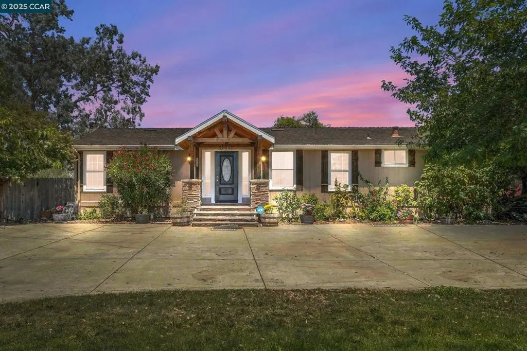 Peaceful country living and equestrian oasis, nestled on nearly 11 acres of land with serene views of Mt. Diablo. This ranch-style home greets you with a charming custom-designed portico, and remodeled features throughout. The primary suite features a dazzling ensuite bathroom with stunning marble tile flooring & walk-in shower. A spacious kitchen features granite countertops, custom tile backsplash, and stainless-steel appliances. The custom French back doors lead to an expansive back deck with a large pergola and stunning views. Outside you’ll find a charming 4-stall mare motel & breezeway leading to an open pasture, large round pen, and an outdoor riding arena. The property is furnished with a large workshop (48’ x 31’) equipped with ventilation fans, lighting, electrical, water, a great opportunity for an ADU! A detached garage (40’ x 30’) that can easily fit 4+ cars, with an electric roll-up door, 220v, RV hookups, and overhead lighting. Additionally, the property is fully fenced, including cross fencing, and two entry gates located in the front leading to an expansive driveway and plenty of space for parking. Enjoy peaceful country living on this property, adorned with blooming crepe myrtle, various fruit trees, gorgeous views and plenty of space for everything you need.