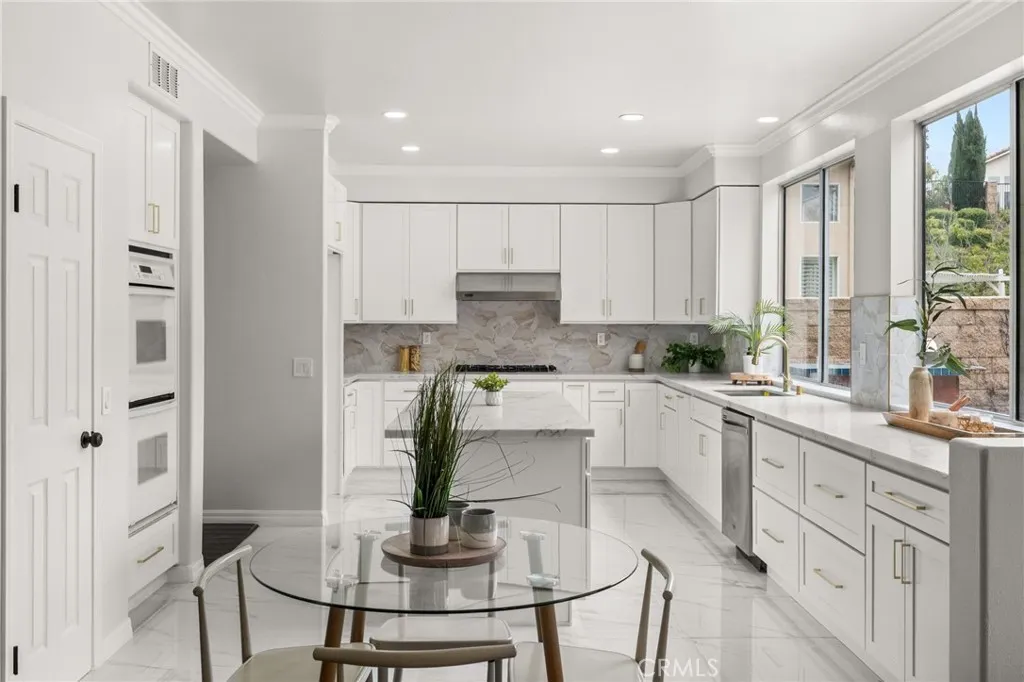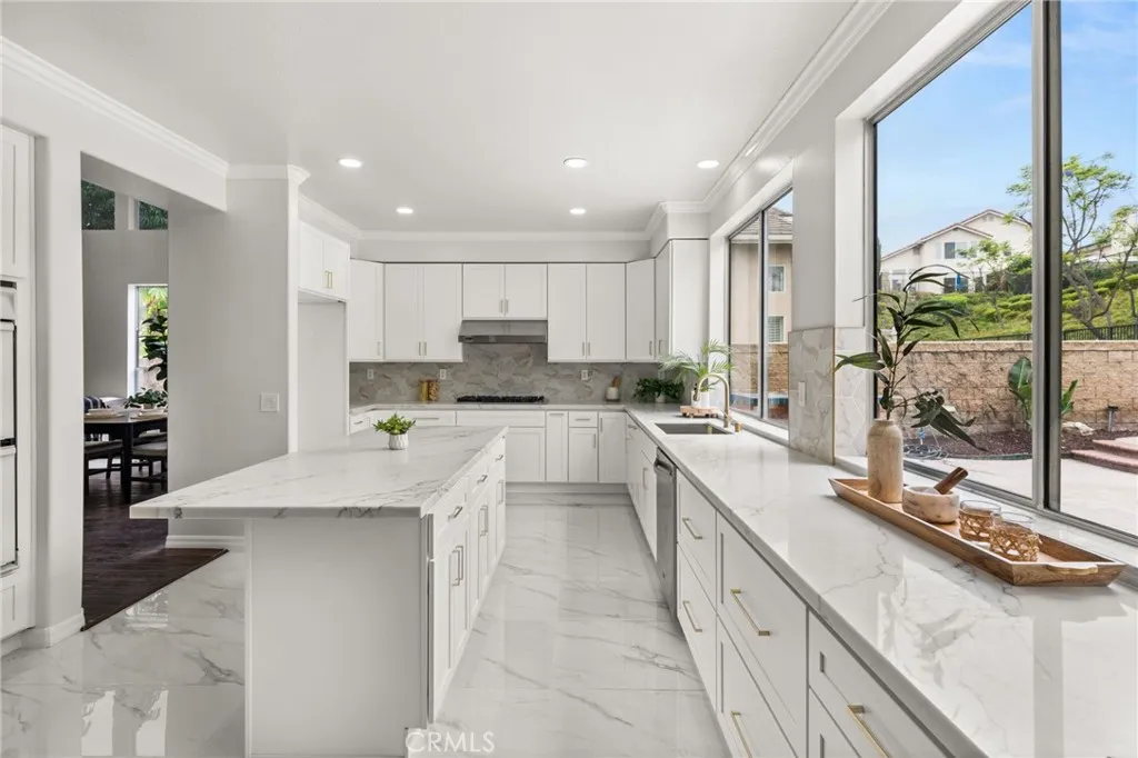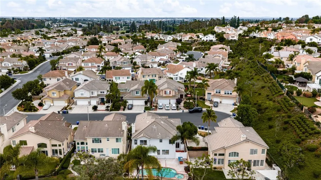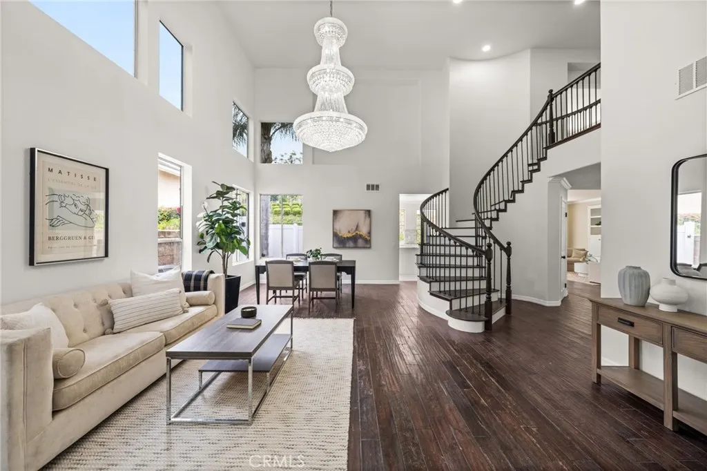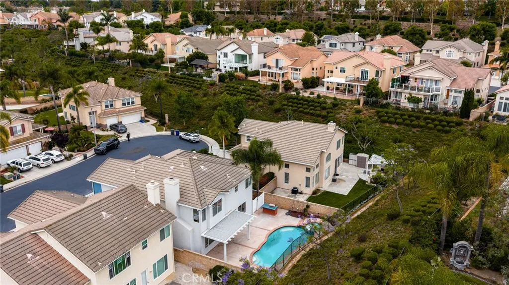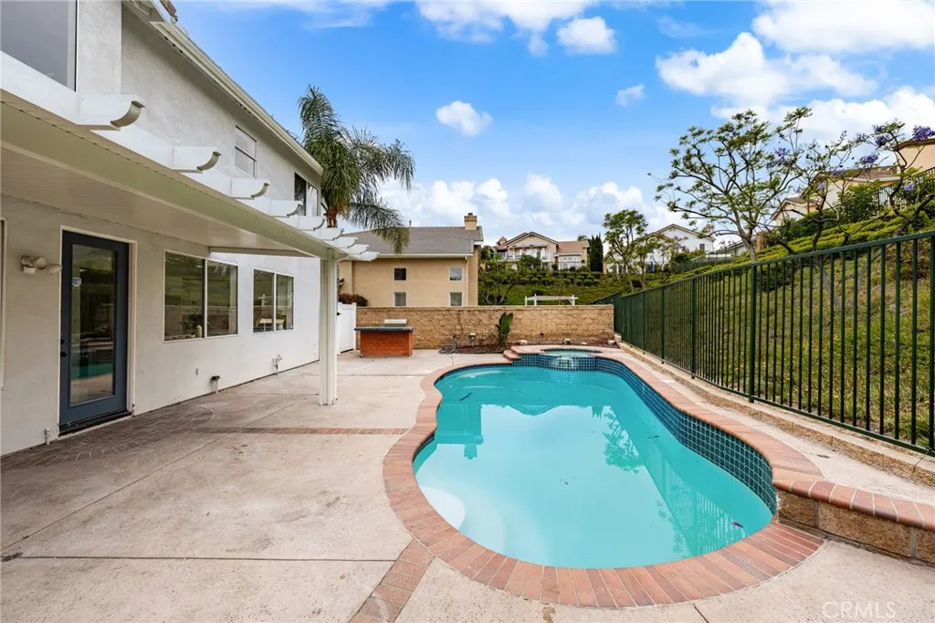 BACK ON MARKET!! NEWLY REFINISHED FLOORS. This two-story home is located in the highly desired Hillsborough Collection. Nestled in a tranquil cul-de-sac within a secure gated community, this two-story gem is family living at its best. Step inside to find soaring ceilings and a dazzling chandelier that compliments the formal living room and formal dining room. Beautiful Hickory wood floors have been refinished and give the home a light and natural feel. The completely remodeled kitchen is an entertainers dream with large island, plenty of chic quartz countertop space, brand new soft-close cabinetry, all complimented with gold accents. Downstairs also features a bedroom with closet and a full bathroom with a shower. The beautiful spiral staircase is the center piece of the home (which has also been refinished), leading up to the Primary and 3 additional rooms. The large Primary suite is a retreat with warm wall tones and 2 amazing sized closets, one with shelves and the other a large walk-in. The Primary bath features a relaxing tub and a shower. The 3 additional rooms feature new carpet and are all very spacious. Entire interior has been painted with colors that complement the accents throughout the home. The backyard is perfect for hosting a pool party with a sparkling pool and BBQ setup. High-rated schools are just around the corner, making mornings a breeze. With five bedrooms—including one downstairs—everyone gets their own space. Plus, a three-car garage wraps up this perfect package. (All new electrical outlets, recessed lighting, faucets, doors, baseboards, switches, front sprinkler system, front grass, garbage disposal, sink, downstairs vanity, mirrors)