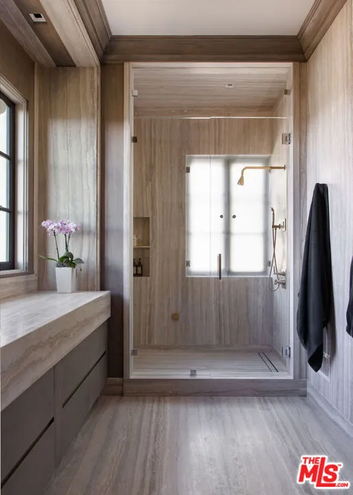 Masterfully built with expansive ocean, island, and mountain views, this contemporary Neoclassical-style residence is privately set in lush landscaping above East Mountain Drive on nearly six acres with a private well system. This sophisticated gated home features large-scale entertaining rooms with soaring ceilings and majestic gallery walls. Multiple sets of south-facing French doors open to breathtaking vistas and myriad outdoor entertaining spaces. Exquisite details combine to create an elegant and livable home with a main floor primary suite of dual baths and closets, three sumptuous guest suites, and an extraordinary infinity-edge pool. Located in a gated enclave of only three estates with a private well system.