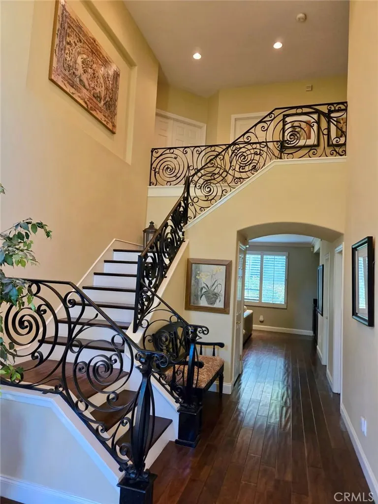 BEL VINTAGE HOME, PRIVATE GATED COMMUNITY. ENTERTAINERS DELIGHT. OPEN FLOOR PLAN, LUSH LANDSCAPING W/ PREMIUM LOT AND PRIVATE REAR YARD. BUILT IN BBQ, MARBLE FLOORING. BUILT IN SURROUND SOUND, WROUGHT IRON STAIRCASE, FRENCH DOORS, CROWN MOLDING & PLANTATION SHUTTERS. MASTER BEDROOM W/ CUSTOM WALK IN CLOSET. VIEW FROM UPSTAIRS.