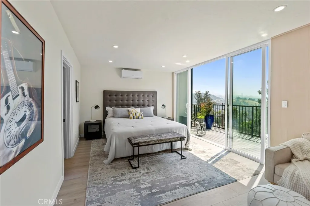 Upstairs, both bedrooms feature en-suite bathrooms, creating private, restful retreats. The primary suite showcases breathtaking views of the Hollywood Sign and Griffith Observatory, making every morning and evening feel uniquely special.