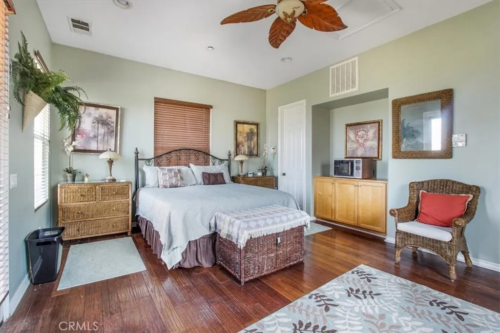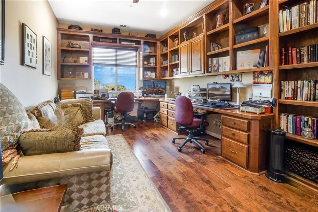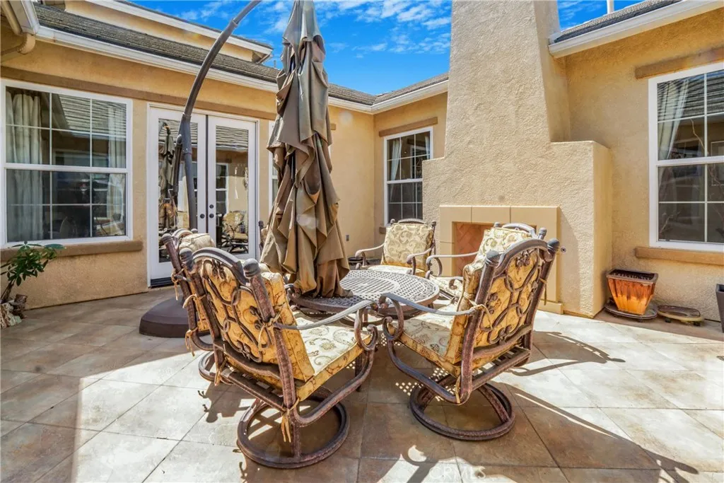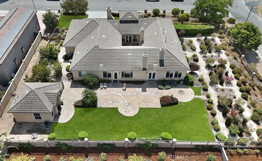 The primary suite is a sanctuary of its own—featuring a dual fireplace, private sitting area, spa-like bath with jacuzzi tub, dual showers, dual vanities, a dedicated makeup station, and expansive walk-in closets. Step through the private door to the backyard oasis, where a custom patio and .58-acre lot with fruit trees await for serene mornings and lively gatherings.