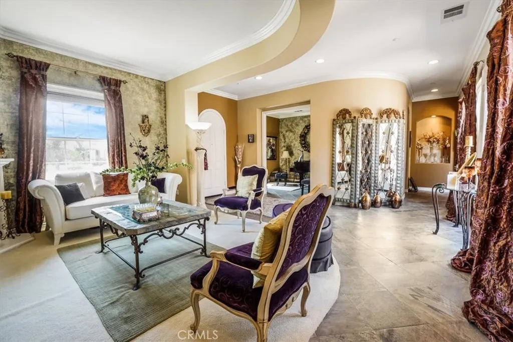 Step inside to 4,404 sq. ft. of refined design featuring 5 bedrooms, 5 bathrooms, a 5-car garage, and a private guest casita. The dramatic entry with 10-ft tray ceilings sets the tone for the formal living room, parlor, and dining room—complete with a custom wine closet for sophisticated entertaining.