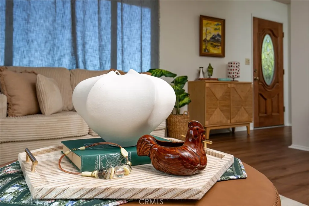 TWO legal homes for the price of ONE. Homes sit on a five-acre ranch, in a equestrian neighborhood, and it comes furnished! It’s the perfect mixture of a home and a place to get away from the business of the world. Stepping onto the property you’re greeted by lovely gardens and nature. The main home you enter with the living room to your right and hall (with pantry) to dining on the left. The living room has spectacular views of the meadows, that get poppies and many wildflowers in the Spring, and mountains in the distance. There is also a wood burning stove in the corner to nestle up to in the winter months when there is snow on the ground.