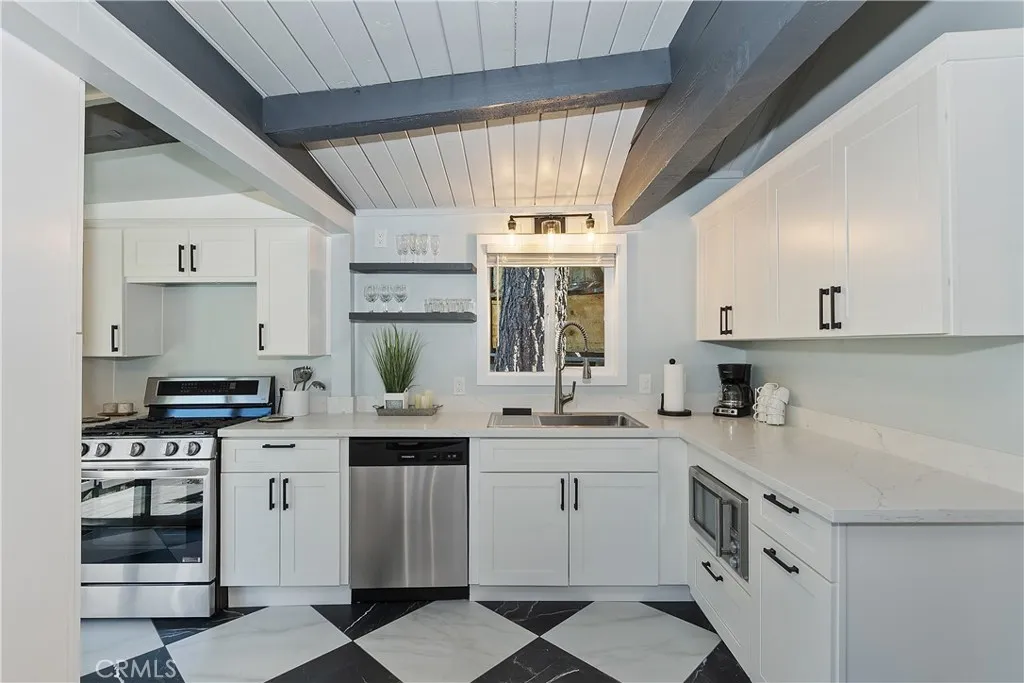 Welcome to your beautifully remodeled mountain getaway, ideally located in the heart of Lower Moonridge ~ One of Big Bear’s most sought-after neighborhoods ~ Nestled on a generous, treed lot, this inviting home offers the perfect blend of modern upgrades, rustic charm, and unbeatable proximity to year-round adventure ~ Step inside and experience a thoughtfully renovated interior where style meets comfort ~ From the updated flooring to the sleek finishes, every inch of this home has been carefully designed for both full-time living and vacation enjoyment ~ Enjoy morning coffee or evening gatherings on the expansive wraparound deck that invites you to soak in the fresh alpine air, surrounded by towering pines ~ The spacious lot offers ample parking perfect for friends, family, or future rental guests ~ Offering two cozy bedrooms plus a versatile bonus room, which could be used as a home office, a third sleeping area, or the game room of your dreams ~ Whether you’re seeking a peaceful personal retreat or a savvy investment opportunity, this flexible layout adapts to your lifestyle ~ Located just minutes from Bear Mountain Ski and Snowboard Resorts, the Alpine Zoo, and Big Bear’s 9-hole golf course, adventure is always just around the corner ~ With year-round activities at your fingertips this is mountain living at its finest ~ Don’t miss your chance to own a piece of Big Bear paradise, this turnkey gem is ready to enjoy from day one ~ Come experience the magic of Moonridge, your mountain dream starts here.