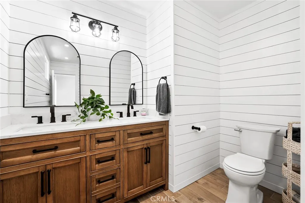 Throughout the home, natural light pours in through all-new windows, brightening up every corner. Recessed lighting, updated closets and doors, and wide-plank flooring tie everything together with a clean and cohesive feel. Outside, you’ll find new walkways and patios, a modern irrigation system, low-maintenance landscaping with subtle lighting, plus a new garage door adding to the curb appeal. Other great qualities of the home include, new roof, new plumbing, new fireplace, new heating and air conditioning plus all new kitchens and baths. Designer touches through including shiplap, unique light fixtures and exterior lighting add to wonderful details of the home.