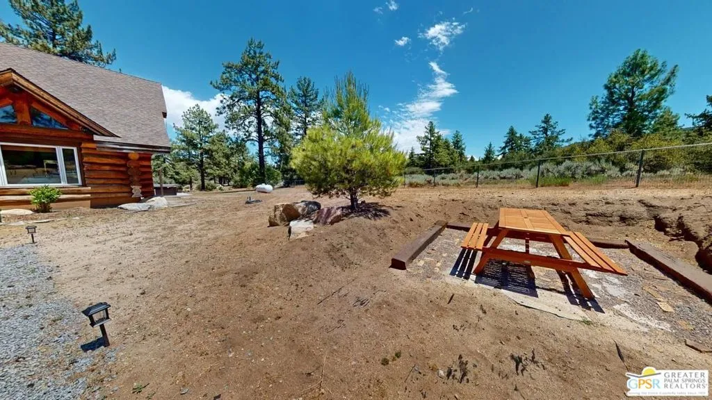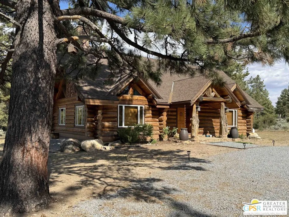 ALL OFFERS WILL BE CONSIDERED for this one-of-a-kind Log Home. It will be a special place for you to call home. Whether used for full-time residency or as a second home, the serenity of this open concept 4.5 acres, is sure to please the most discerning buyer. The Log Home includes a large entry foyer which sets the stage for all the interior spaces of this home. To the left of the entry is the large Great Room with wood burning fireplace, Dining area and Kitchen featuring a whimsical breakfast bar made entirely of a free form log – stunning! The two-story plus high ceilings and the use of the natural log walls lend themselves to the unique character of this special residence. The Great Room is light and bright just perfect for both intimate gatherings or large-scale parties. The views of the mountains in the distance are incredible. The kitchen features granite counters with custom designed backsplashes that depict the mountains – very clever – plus the new electric range/oven, pot-filler and vent hood, double door refrigerator, microwave oven, dishwasher and a semi-hidden pantry closet under the stairs to the loft complete the open kitchen. There is a free form log bar in the corner of the Great Room as well. To the right of the front door is access to the large Primary First Floor Suite with extremely high ceilings and a ceiling fan and access to the combination dressing room/spa room and then on to the primary ensuite bath. The stall shower has beautiful stone work. The double vanity, with granite counters, is great as well. The views from the bathroom and primary suite are exquisite, as they are from the other rooms in this well designed home. The dressing/spa room offers direct access to the north facing deck with room for outdoor entertaining and the outdoor spa, just a few steps away. At the other end of the home, the French doors off the Great Room lead to the first floor bedroom, which could also be used as an office or study. This room also offers access to the north facing deck. Besides the first floor bathroom – with the stackable laundry closet – up the stairs is the additional lofted bedroom – extremely light and bright featuring lovely views to the north. The property is well maintained with pastures for a myriad of uses and the electronically operated iron gate sets the stage for what awaits owners and visitors to this massive property. Located within a 45 minute drive to Palm Desert – El Paseo – shopping and dining and the property is about a 25 minute drive to Idyllwild/Pine Cove. The Paradise Valley Cafe, at the corner of Hwy 371 and Hwy 74 is a great dining location just a few miles to the east of the property. The community has it’s own clubhouse known as the Garner Valley Property Owners Association also located on Devils Ladder Road. Easy to show. Welcome to your new Mountain Home!