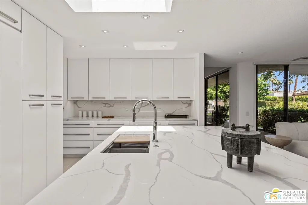 Thoughtfully remodeled, READY NOW to occupy and enjoy in time for season! Perfect for a truly carefree lifestyle in this highly upgraded low-maintenance residence with highly desirable details that exudes luxury and refinement. Nestled within the tranquil inner sanctuary of The Springs Country Club away from traffic, this highly sought after Shaughnessy THREE-Suite floor plan offers truly sophisticated living. This meticulously remodeled 2,950-square-foot residence is a haven of modern comfort and style. Savor mountain vistas from your prime cul-de-sac location near the spectacular 48,000 sf Clubhouse renovated in 2021. The living room, with welcoming marble fireplace and expansive ten-foot ceilings has an adjacent full wall wet bar creates an atmosphere perfect for entertaining. The gourmet kitchen with lounge and center skylit breakfast Island is a culinary enthusiast’s delight, showcasing high-end Fisher & Paykel appliances: a 30-inch column refrigerator and freezer, a five-burner stove with griddle and dual ovens, and a dual-drawer dishwasher. Solid quartz countertops and backsplashes lend an air of elegance. Plus, the residence features Kohler’s top-tier fixtures throughout. The principal primary bathroom is a highlight, with custom quartz sinks, a freestanding Kohler Garden tub, and an electronic bidet. Enjoy separated dual primary suites plus a guest suite/media room/home office just off the foyer. All bathrooms are equipped with adjustable LED lighting, anti-fog mirrors, and Hunter Douglas shades for added privacy. All bedrooms comfortably accommodate king-sized beds. Completing this exceptional desert residence is an oversized three-car garage with storage. This is a rare opportunity to own this truly remarkable home. Private outdoor living awaits you in the Tuscan-inspired 20×25 courtyard, ideal for sunbathing, a safe haven for pets or a future spa/pool. Maximize your budget with the adjacent HOA-maintained pool/spa, a valuable amenity included at no duplicated extra costs of maintenance, cleaning or heating expenses. Schedule your private viewing today and begin your journey home. NOTE: Frosted doors and spa/pool-deck shown in courtyard were digitally added to show future owner expansion options if desired. The monthly HOA fee includes: 24/7 guard gated community, roof maintenance (flat section last done in 2021), exterior painting every 6 years, wi-fi internet, Two DVR boxes with HBO & Showtime, social events, 9 tennis courts, 12 pickleball, 2 bocce ball, golfing, swimming and fitness center with 46 community saltwater pools and spas, 5 Lap pools! Plus, use of the Clubhouse and Oasis Cafe.