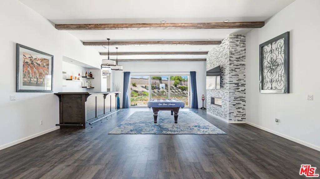 Rare Opportunity to Acquire a Highly-Upgraded Estate on a HUGE 54,000 Square Foot Lot in the Prestigious La Stancia Community of Woodcrest! Spanning just under 4,200 sq. ft. of single-story living space, this stunning residence was newly built in 2021 w/ modern A-Frame Spanish architecture & features premium finishes & design throughout. Features of this prime residence include two custom-built marble fireplaces, wood beams throughout on ceilings, a full-size custom wood bar, full custom wood wine room, upgraded stainless steel appliances, & upgraded counter tops & flooring throughout. Open-concept living seamlessly connects the living, dining, and kitchen areas – perfect for gatherings. Soaring 13 ft. ceilings in the foyer & great room create an airy, bright atmosphere. Gourmet Chef’s kitchen, w/ Calacatta Classique quartz countertops, designer backsplash, stainless-steel appliances, & large island ideal for food prep & casual meals. Additional spaces include a bonus room & den/office – perfect for remote work, play, or a customized lounge. Luxurious primary suite, featuring a spa-style bath with soaking tub, walk-in shower, dual vanities, & a spacious walk-in closet. Expansive backyard area offers privacy & abundant room for future additions/outdoor amenities (private pool, outdoor kitchen, or resort-style landscaping) & the creation of any kind of oasis you can imagine! Energy-efficient upgrades: dual-zone HVAC, super-insulated attic, tankless water heater, and dual-glazed windows. Oversized 4-car garage (approx. 945sqft), providing abundant space for vehicles & storage. The La Stancia community offers a quiet, well-maintained, and family-friendly neighborhood & is close to Woodcrest schools & local amenities, offering an ideal suburban balance. 16130 Gallery Heights Dr. offers a rare blend of spacious single-story living, modern luxury finishes, and a large, versatile lot, all within a tranquil, upscale Riverside community. Whether you’re raising a family, working from home, or seeking room to grow, this home delivers comfort, style, and long-term value.