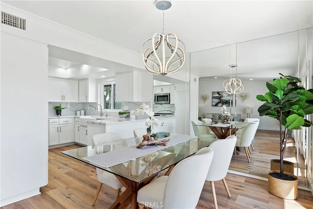PRICE IMPROVEMENT! Discover this beautifully updated, move-in ready single-level home located in the highly sought after El Niguel Terrace community of Laguna Niguel. Boasting 4 bedrooms and 2.5 bathrooms, this spacious home features a bright, open floor plan with stylish, modern finishes throughout. At the heart of the home is a chef-inspired kitchen complete with quartz countertops, Bosch appliances, a farmhouse sink, built-in microwave, gas range, soft-close cabinetry, and ample pantry space – perfect for both everyday meals and entertaining guests. The inviting family room includes a cozy fireplace and opens seamlessly to the private backyard through elegant French doors, offering the perfect setting for outdoor dining or relaxing under the sun. The primary suite is a serene retreat with dual vanities, a generous mirrored closet, and direct access to the spacious patio, ideal for quiet mornings or evening unwinding. Additional highlights include luxury vinyl plank and tile flooring, dual-pane windows & sliding doors, central air conditioning, and a 2-car garage with laundry hookups and extra storage. Residents enjoy access to community amenities such as a sparkling pool and scenic walking trails. With nearby access to Salt Creek Beach, El Niguel Golf Course, Laguna Niguel Regional Park, and the Laguna Coast Wilderness, outdoor adventures are just moments away. Shopping, dining, and coastal destinations are all within easy reach. Check out “The Cove at El Niguel”, a 22 townhome-style proposed development on the adjacent parcel of land to this community that is targeting a younger demographic. See more info at “thecovelagunaniguel.com”