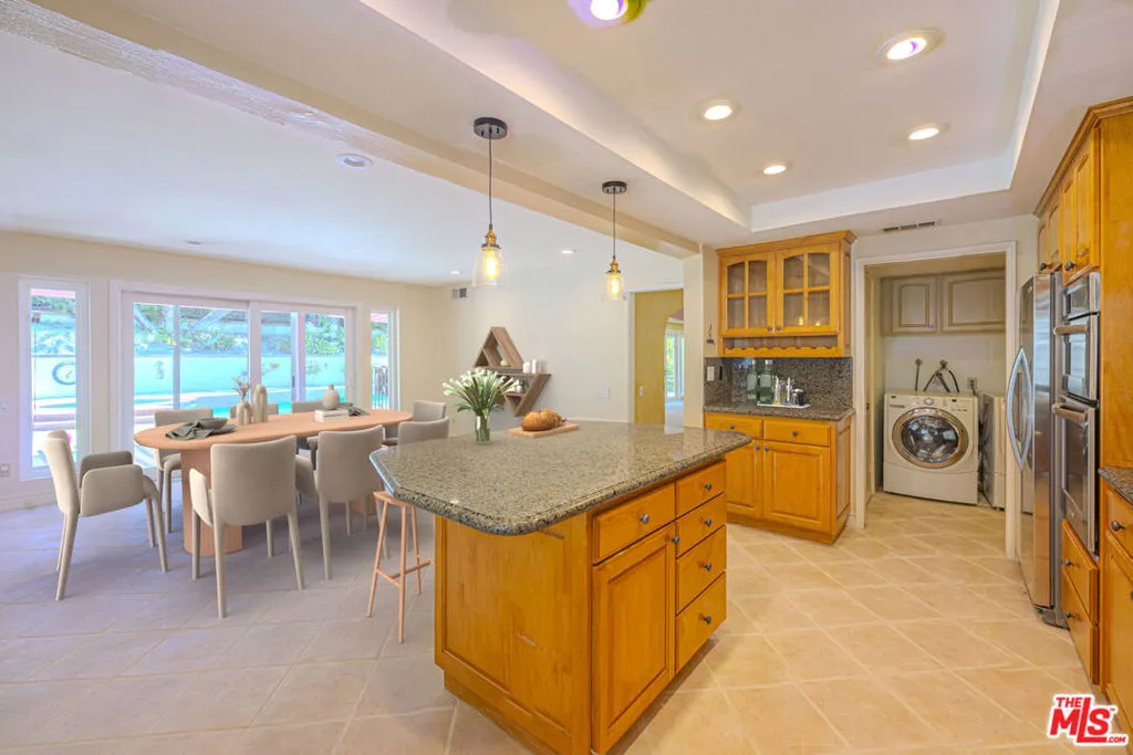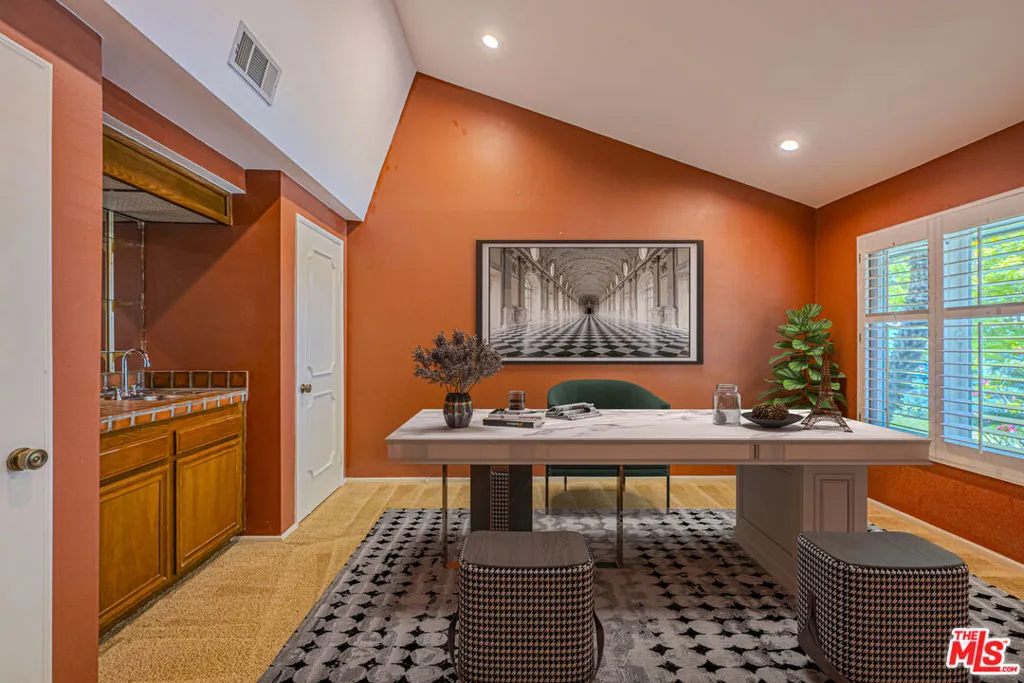 Step inside to an inviting open layout featuring a cozy living room with a fireplace – perfect for gatherings – that flows seamlessly into a dining area with plenty of space for family meals. The sunny kitchen boasts granite countertops, a handy island, and top-tier KitchenAid appliances, opening to a comfortable family room where you can chat while cooking. Large windows fill the space with natural light and offer views of your backyard retreat. The practical first floor includes a bedroom with attached 3 bath (ideal for guests or a home office) plus laundry facilities. Upstairs, the primary bedroom features two closets and a bathroom with tub/shower, along with two additional bedrooms with durable hard flooring. The beautifully rebuilt maple and wrought-iron staircase adds character to this welcoming home. Outside, your private oasis awaits with a sparkling pool, relaxing spa, and crackling fire pit under a covered patio – perfect for California living. The three-car garage offers extra storage and even includes a sauna for ultimate relaxation. Located in the desirable Sunset Hills area, you’ll enjoy: Quick access to US-101 for easy commutes. Nearby shopping at The Oaks Mall, Whole Foods & Trader Joe’s. Adjacent to Sunset Hills Golf Course. Minutes from Wildwood Park’s hiking trails. Top-rated Conejo Valley Unified School District schools. This home offers the perfect blend of comfort, convenience, and that special Thousand Oaks charm. Your California dream lifestyle starts here!