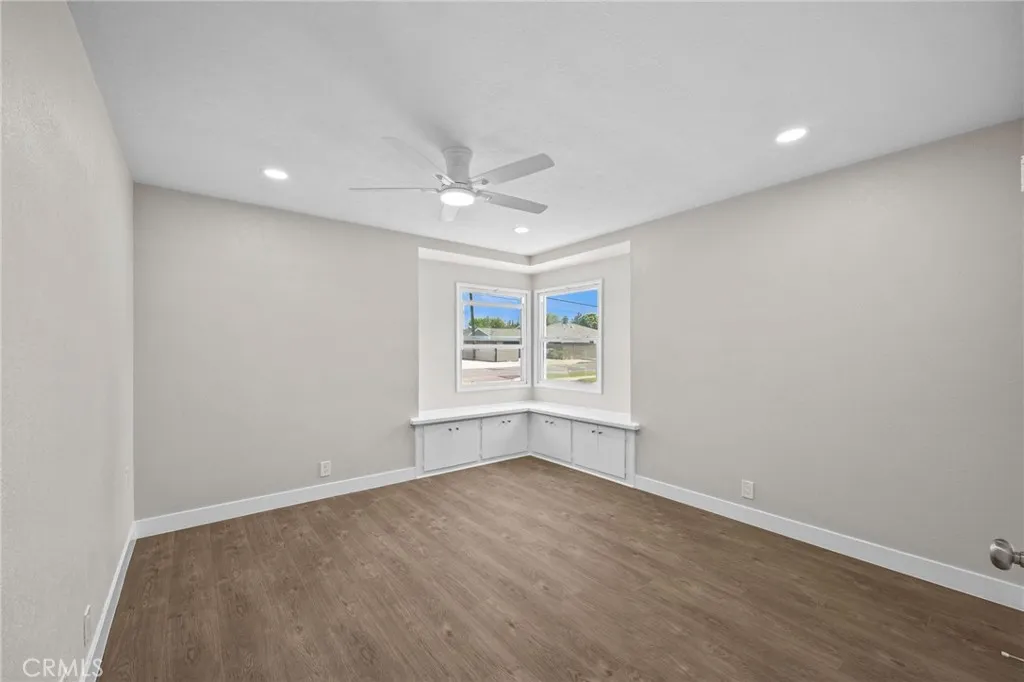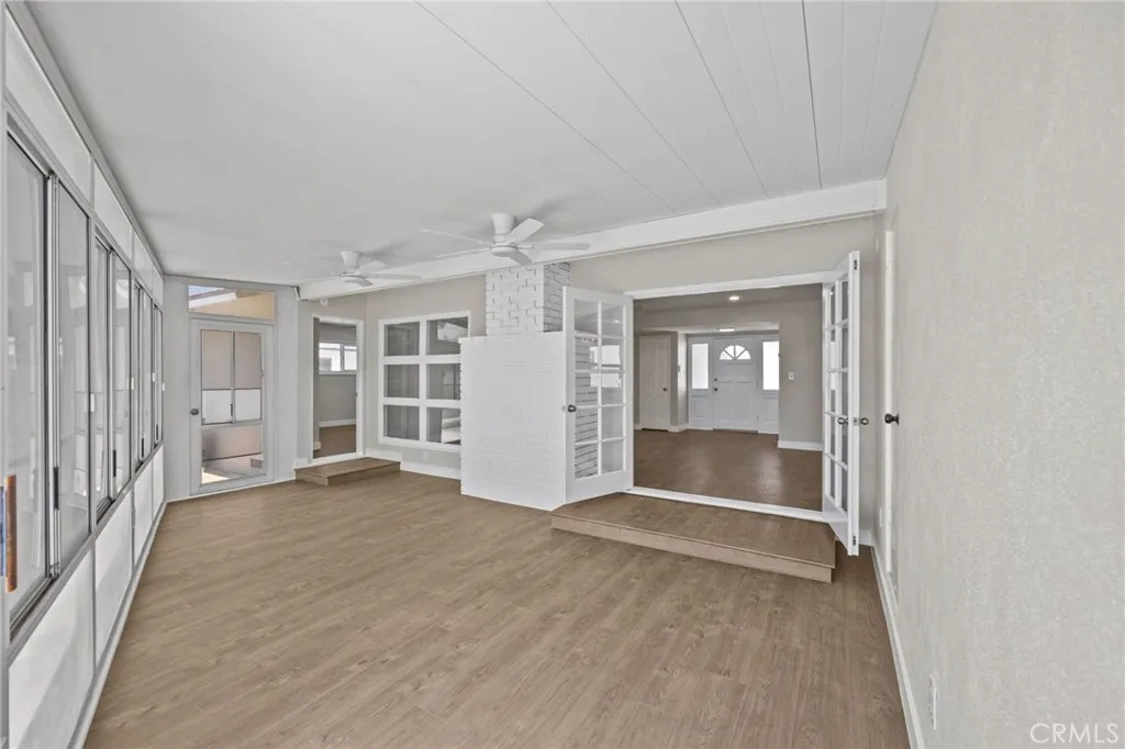 Down the hall are 3 bedrooms and 2 updated bathrooms. The hall bath offers a walk-in shower, while the second bathroom includes a tub/shower combo and dual vanities. The dedicated laundry room adds convenience with built-in cabinets and a utility sink. A large enclosed patio with ceiling fans gives you bonus space for a gym, playroom, or lounge area.