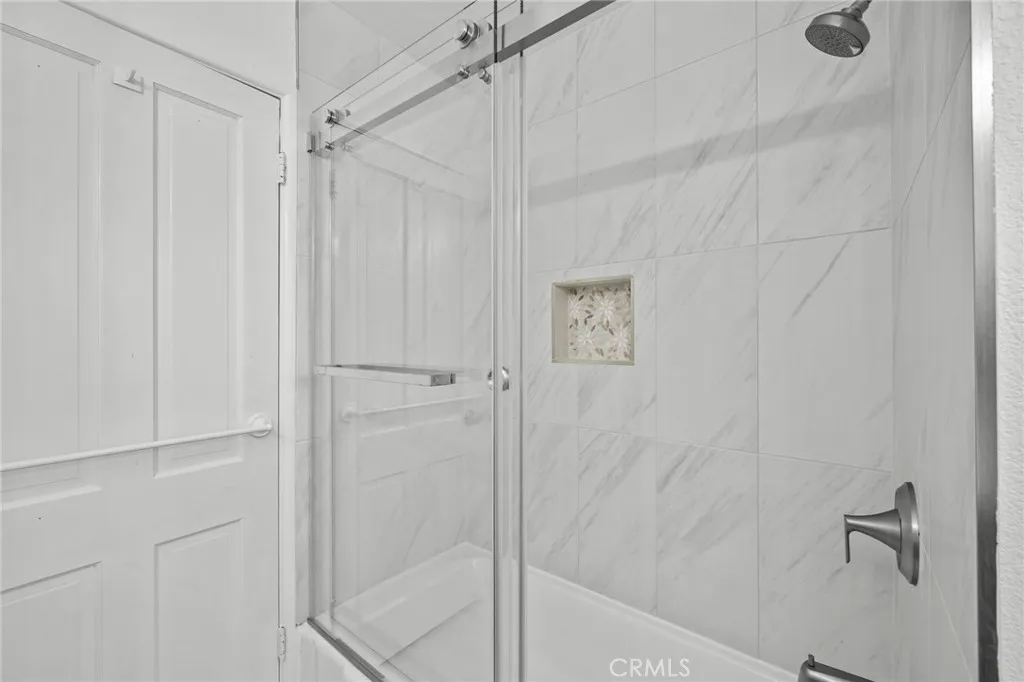 The kitchen shines with quartz countertops, shaker cabinets with remote-controlled uplighting, a subway tile backsplash, and stainless steel appliances. Whether you’re prepping meals or entertaining, this space is both beautiful and practical.