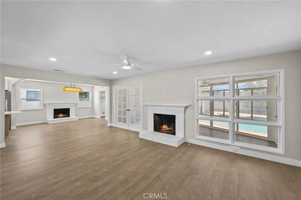 BACK ON THE MARKET!! Step into this freshly remodeled single-level home, where every detail has been updated for comfort, style, and function. Inside, the open layout is bright and welcoming with high ceilings, LVP flooring, and recessed LED lighting throughout. The living and dining areas each feature their own fireplace, creating cozy spots to relax or gather.