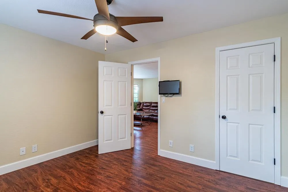 Great Oak Meadows private gated community that features top of the line curb appeal with a circular driveway 3 car garage,3 bedrooms plus a downstairs office that could be used as a bedroom,2 fireplaces, separate family room and living rooms as well as a formal dining room, luxurious bathrooms are a plus in this home, the kitchen features center island with granite slab countertops that is great for entertaining, outdoor patio great with BBQ pit, a massive 3 car garage with new garage doors plus a big bonus “OWNED SOLAR PANELS” that saves big on the utility bills plus wheel chair access plus pavers on the side of the house for RV or boat . The HOA covers the water and private security gates.