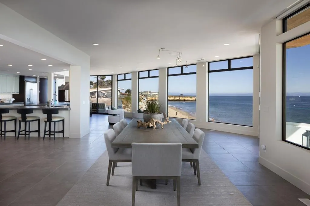Experience unparalleled coastal living in this one-of-a-kind contemporary oceanfront home, set on over 500 feet of beachfront with stunning 240 degree views through expansive floor-to-ceiling windows. Fully remodeled, this luxury retreat is among Santa Cruz’s most exceptional properties. Located on a ~3/4 acre private point, it offers dramatic views of the beach and lighthouse from nearly every room. The open layout includes a chef’s kitchen, an atrium-style game room that opens to an outdoor BBQ area, and a relaxing ocean-view hot tub. Each bedroom features its own en-suite bath and breathtaking surf views. A separate lower-level suite with private entry, kitchen, living room, bedroom, and bath offers flexible living or guest quarters. Enjoy your own sandy beach area, with a gated path providing direct access to the public beach. Just a short beach stroll to the harbor, this rare gem blends privacy, luxury, and location into the ultimate Santa Cruz lifestyle.