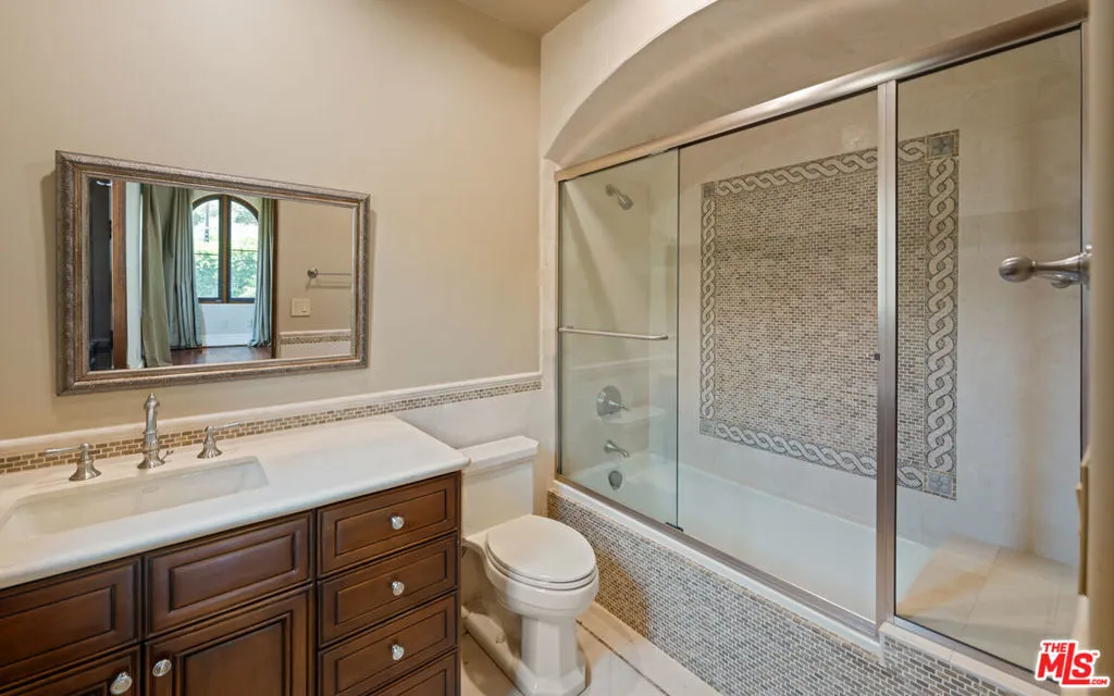 Landlord is offering 2 weeks free on a 12 month lease. Step into timeless elegance at this stunning Mediterranean estate in the heart of Brentwood. Tucked behind lush hedges and framed by mature palms, this grand residence offers unparalleled privacy and sophistication. Enter through a dramatic double-height foyer with a sweeping wrought iron staircase, domed ceiling, and ornate chandelier. The spacious formal living and dining rooms are designed for entertaining, accented by arched entryways, rich wood detailing, and natural stone floors. An expansive chef’s kitchen anchors the home, featuring a massive marble island, top-of-the-line Viking appliances, walk-in pantry, and a breakfast nook that overlooks the backyard. The residence offers multiple family and entertaining spaces, including a warm family room with a fireplace, custom cabinetry, and seamless indoor-outdoor flow through French doors. A wood-paneled office with built-ins provides the ideal work-from-home setup. Upstairs, the luxurious primary suite is a true retreat – complete with a cozy sitting area, fireplace, and French doors that open to a private balcony. The spa-like primary bath boasts dual vanities, a soaking tub surrounded by arched windows, and two oversized walk-in closets with custom storage. Additional bedrooms are generously sized and beautifully appointed, each with en-suite bathrooms. Step outside to your own private oasis – complete with a sparkling pool, elevated spa, outdoor fireplace, and multiple lounge areas surrounded by vibrant landscaping. This tranquil backyard is ideal for both intimate gatherings and large-scale entertaining. Located moments from Brentwood’s best shops, dining, and schools, this exquisite home combines Old World charm with modern comforts in one of LA’s most desirable neighborhoods.