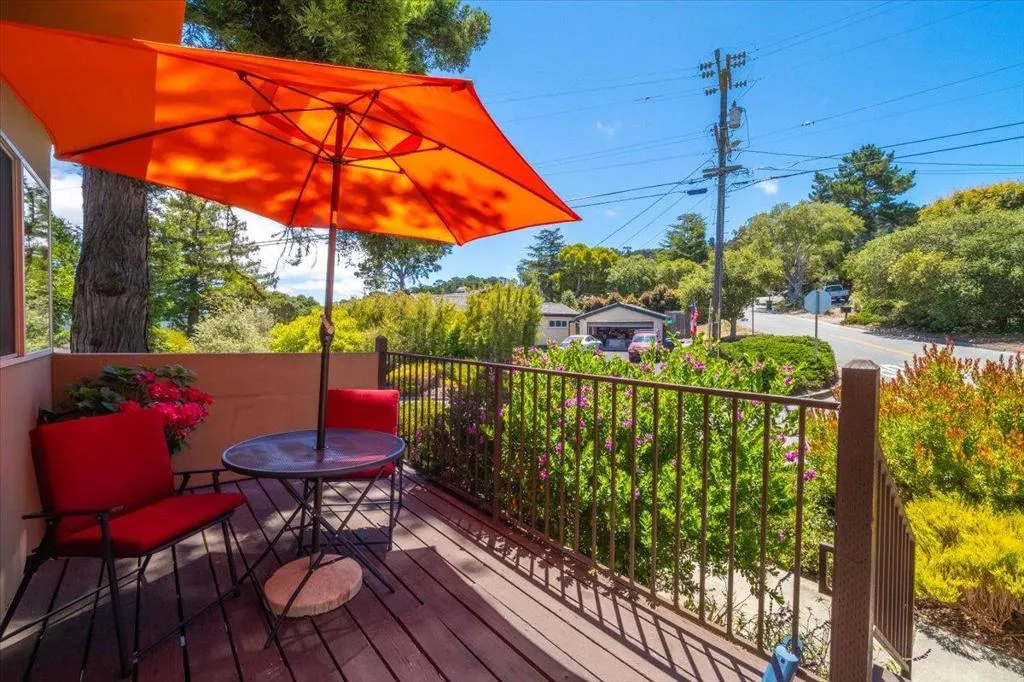 Beautifully updated 2-bedroom, 1.5-bath, quiet end-unit condo featuring panoramic views of Monterey Bay and the surrounding forest. This light-filled home boasts vaulted tongue-and-groove wood ceilings, hardwood floors throughout, and extra windows exclusive to this unit. The open concept kitchen offers granite counters, a gas range, and abundant cabinet space. Enjoy seamless indoor-outdoor living with a private balcony and patio, plus a serene semi-private front porch. Includes two parking spaces in the underground garage and a storage area. Ideally located within walking distance to Whole Foods and Elroys Fine Foods, and just minutes to beaches, scenic trails, dining, and shopping. Perfect as a coastal retreat or full-time residence.