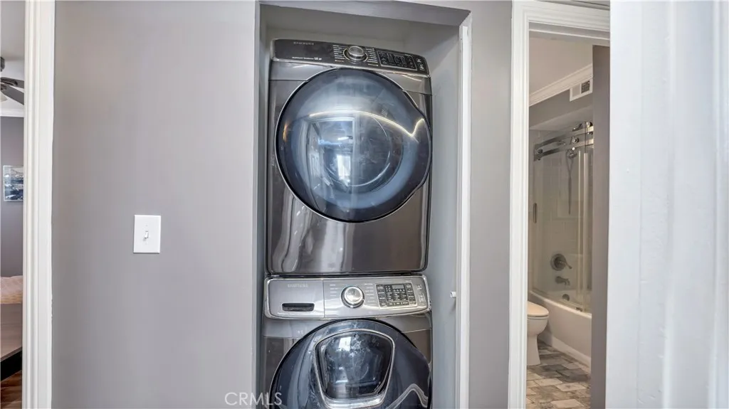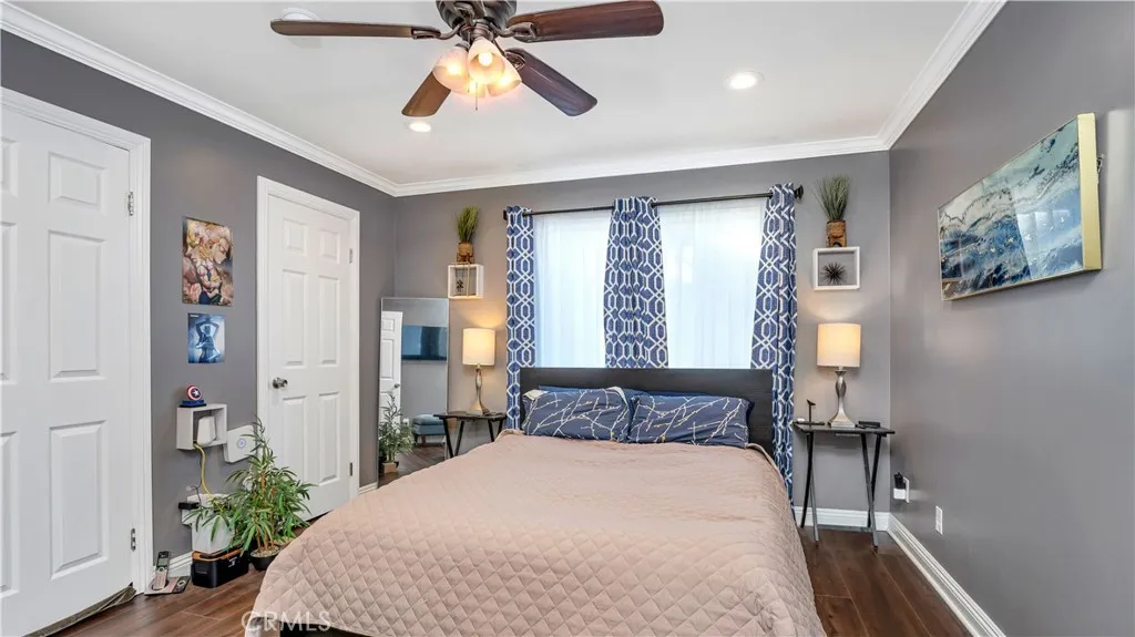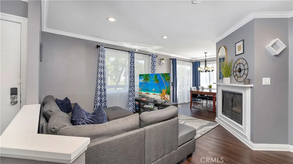 Nestled within the desirable American Beauty Village West, this lower corner end unit offers a serene retreat away from the street. As you step inside, the gorgeous new waterproof laminate flooring catches your eye, complemented by a cozy fireplace and a wrap-around balcony. From this vantage point, enjoy views of the lush greenbelt, sparkling pools, and breathtaking sunsets. Natural light floods the space, highlighting features like recessed lighting and crown molding. The living room, dining area, and spacious kitchen create an inviting atmosphere. Two generously sized rooms accompany the primary ensuite, complete with double doors. Both bathrooms have been tastefully updated. Convenience abounds with an in-unit washer-dryer. Stylish upgrades include a brand-new 3-ton Carrier HVAC system (with a 10-year manufacturer warranty), Nest thermostat, and fresh paint. Community amenities encompass multiple pools, spas, tennis courts, and playgrounds. Conveniently located near shopping, dining, entertainment, bike trails, hiking trails, schools, the freeway, and Metrolink stations, this home offers a prime SCV lifestyle. Buyers may potentially assume the seller’s FHA loan. No Mello Roos Taxes, and the HOA covers water, trash, exterior maintenance, and insurance. Property is being sold with tenants in place.