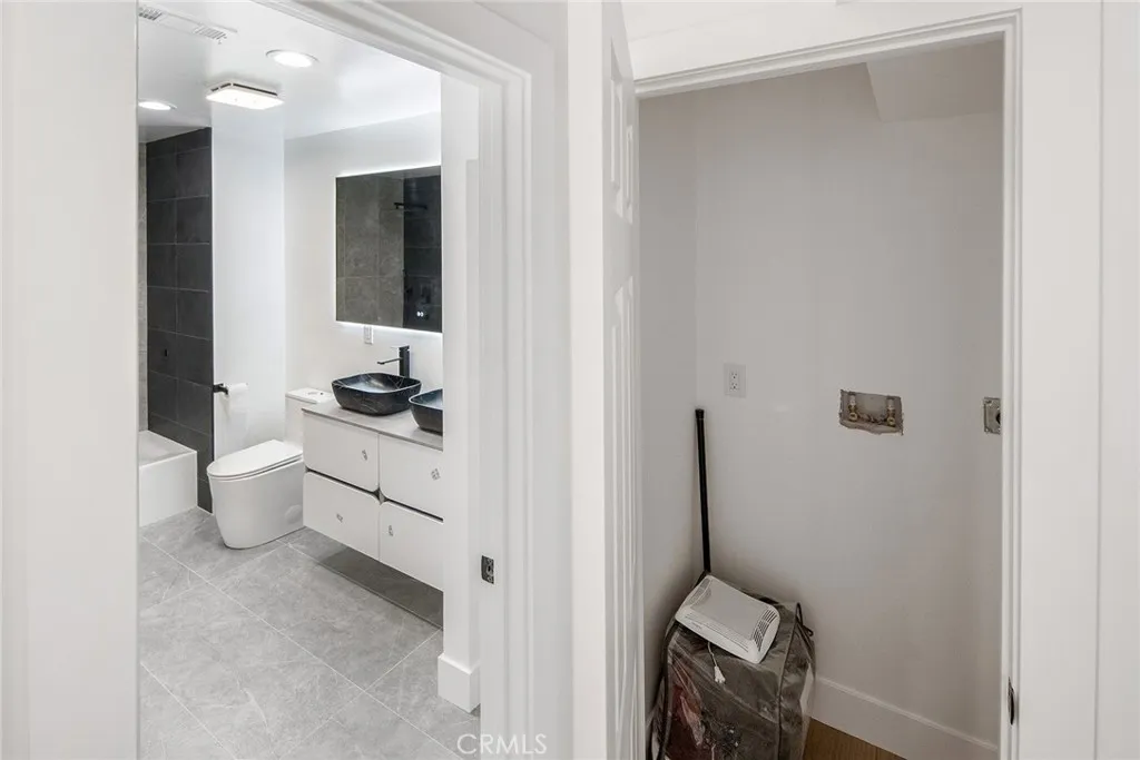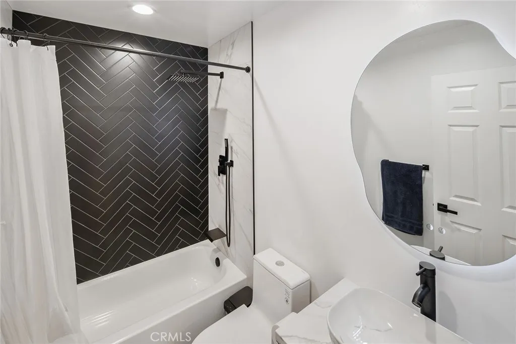 The 3-bedroom, 2-bath layout features vaulted ceilings and an open-concept living space filled with natural light. The kitchen is outfitted with quartz countertops, stainless steel appliances, and custom cabinetry—designed for functionality and everyday living.