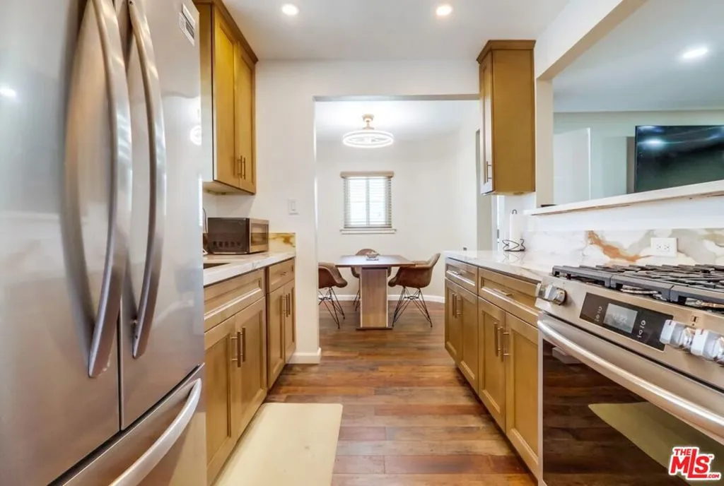 Welcome to this beautifully updated California bungalow in Park heights area of LA, just outside of Inglewood. Blending classic charm with modern sophistication, this thoughtfully upgraded home offers designer touches and flexible living options perfect for today’s lifestyle. Step into the stunning kitchen, recently upgraded with warm Honey Maple cabinetry, elegant quartz countertops, and brand-new stainless steel appliances, including a five-burner stove, ideal for the culinary enthusiast. The bathroom is a true spa-like retreat, adorned with floor-to-ceiling designer tile, dual shower heads including a luxurious rainfall feature, with a built-in seat and exquisite gold-accented fixtures on top of this is a sleek digital temperature control faucet. Comfort is key with energy-efficient mini-split systems installed in the living room and both bedrooms, ensuring year-round climate control. Each bedroom and dinning room also features custom ceiling fans that add both style and functionality. Additional highlights include: new copper plumbing, dual-pane windows, recessed lighting in living room, high-end, stackable washer and dryer and numerous custom finishes. The spacious lot offers incredible potential, featuring a deep backyard and a converted detached garage (approx. 440 sq. ft., unpermitted ADU) perfect for guest space, a rental opportunity, or a creative studio. Ideally located near the Metro K Line, SoFi Stadium, and the thriving shops and eateries of nearby Inglewood and other near by costal cities. This is the turnkey property with long-term value that you have been looking for! Don’t miss your chance to own this exceptional Hyde Park home where style, comfort, and opportunity come together seamlessly.