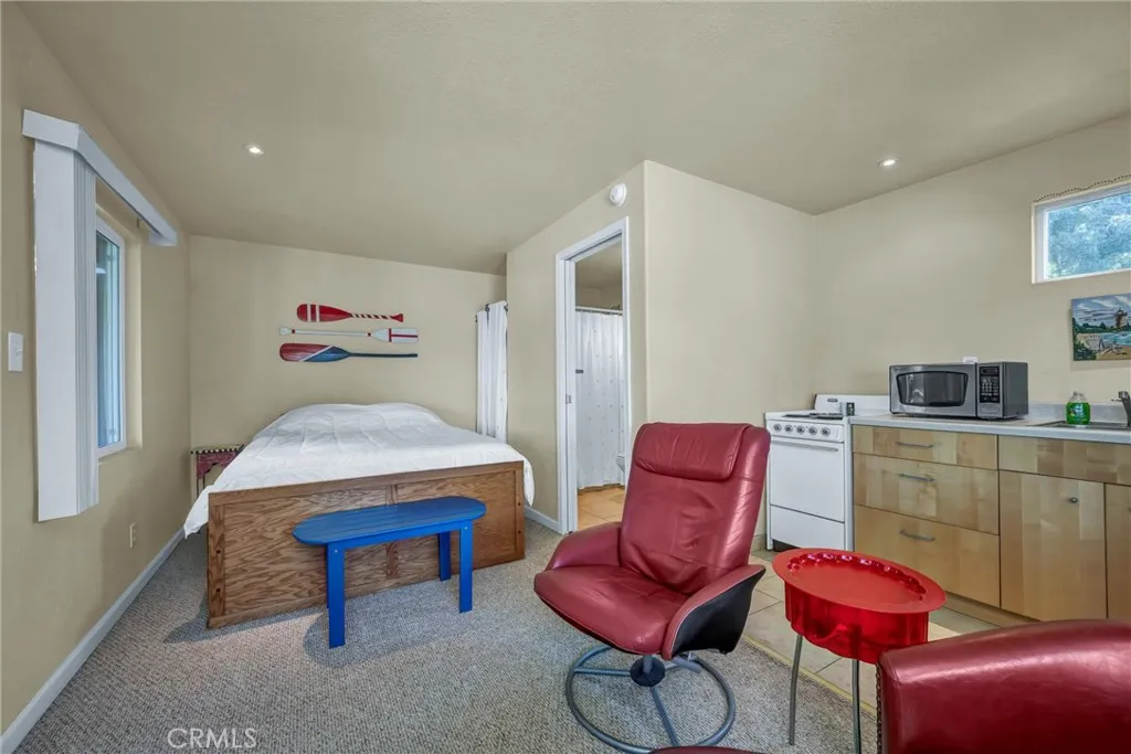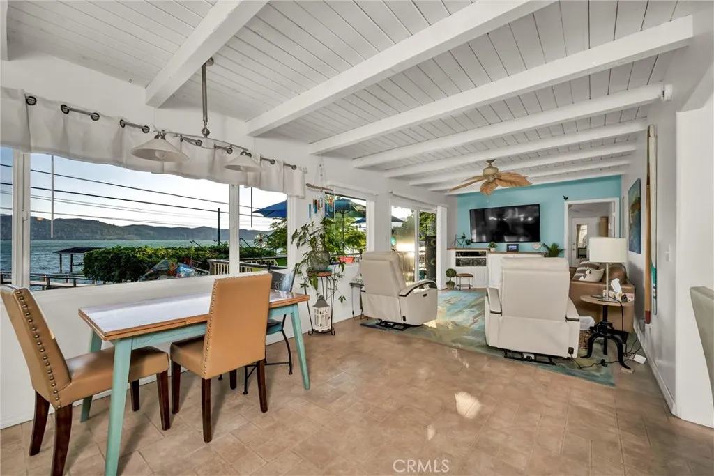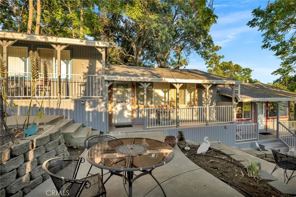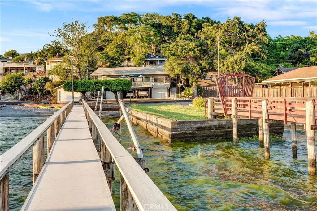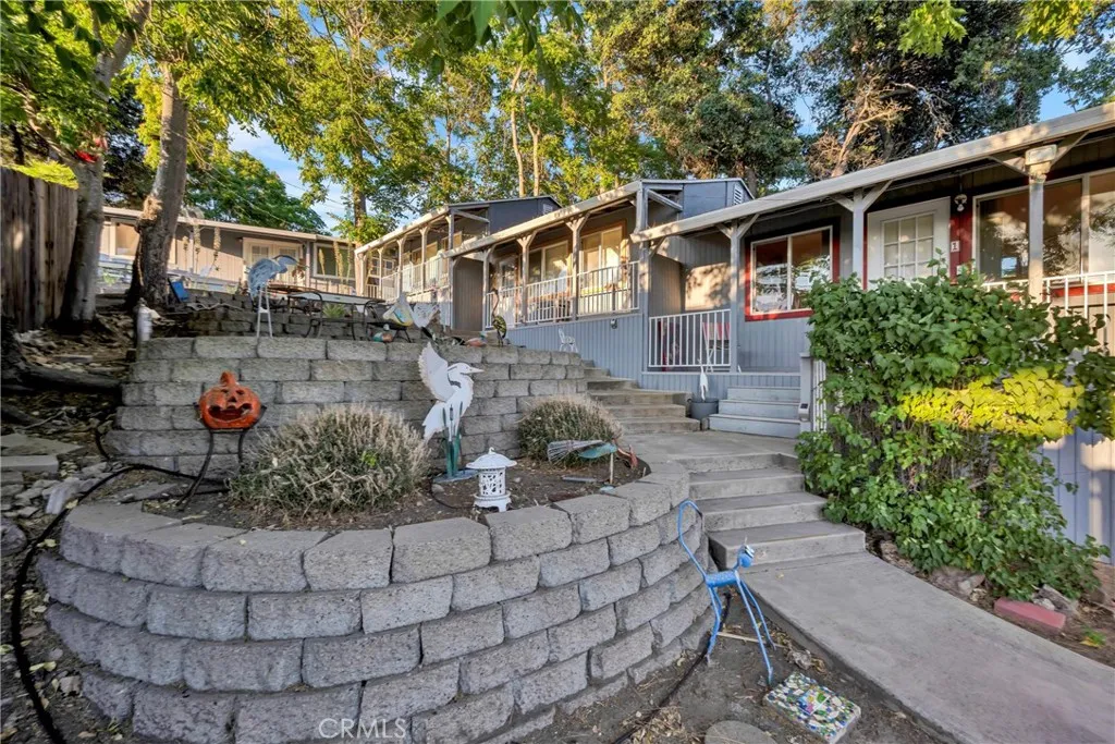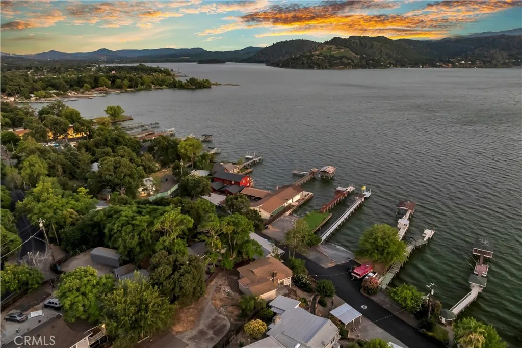 LAKEFRONT MULTI-FAMILY/INVESTMENT OPPORTUNITY! Welcome to a rare lakefront opportunity offering incredible versatility, charm, and income potential. Tucked in a desirable location on a quiet street with no through traffic, this peaceful retreat combines privacy with convenience—and yet is less than ten minutes from downtown shops and amenities. Whether you’re dreaming of a private lakefront residence with income from rental cabins, a multi-family compound, or reviving a boutique resort, this property is ready to meet your vision. The main house is a 2BD/2BA with wood-beamed ceilings, rich natural light, and sweeping lake views from nearly an entire wall of windows. The updated kitchen features granite slab countertops and newer stainless steel appliances. Two single-car garage bays, two carports, and additional off-street parking ensure ample space for residents and guests alike. Step outside to your own lakefront paradise. The approximately 180’ dock includes electricity, a covered area, and an adjustable swimming platform—perfect for sunny days on the water. Enjoy shaded lakeside picnics or relax on one of the many patios throughout the property. Included are five additional, turn-key cabins. Cabin #4 is a spacious 1BD/1BA (approx. 800 sq ft) with its own yard and private entrance. Cabins #1–3 are cozy studio units (approx. 280 sq ft each) complete with kitchenette, full bath, and private patios overlooking serene lake and mountain views. Cabin #5 is a smaller studio with a full bath—ideal for overflow guests or an office. A gated and covered RV space with electricity and water adds even more flexibility. Originally part of a historic resort, the property is zoned Mixed Use – Commercial/Residential, providing endless possibilities: vacation rentals, long-term income, a private family compound, or a reimagined lakeside resort. With its tranquil setting, flexible zoning, and income-producing potential, this is a truly special opportunity on the lake!