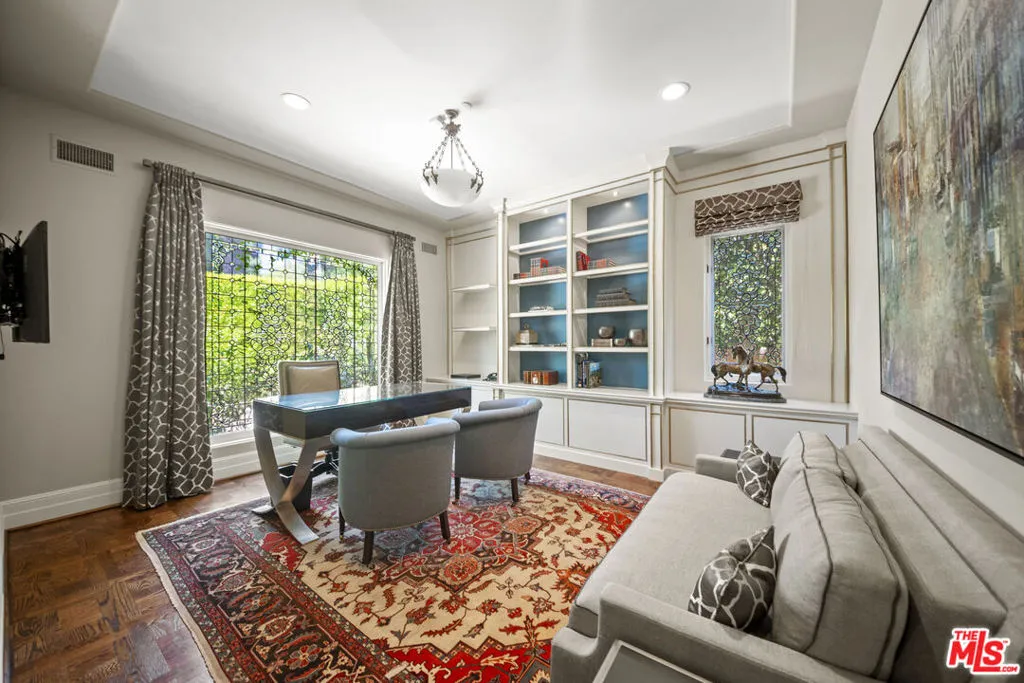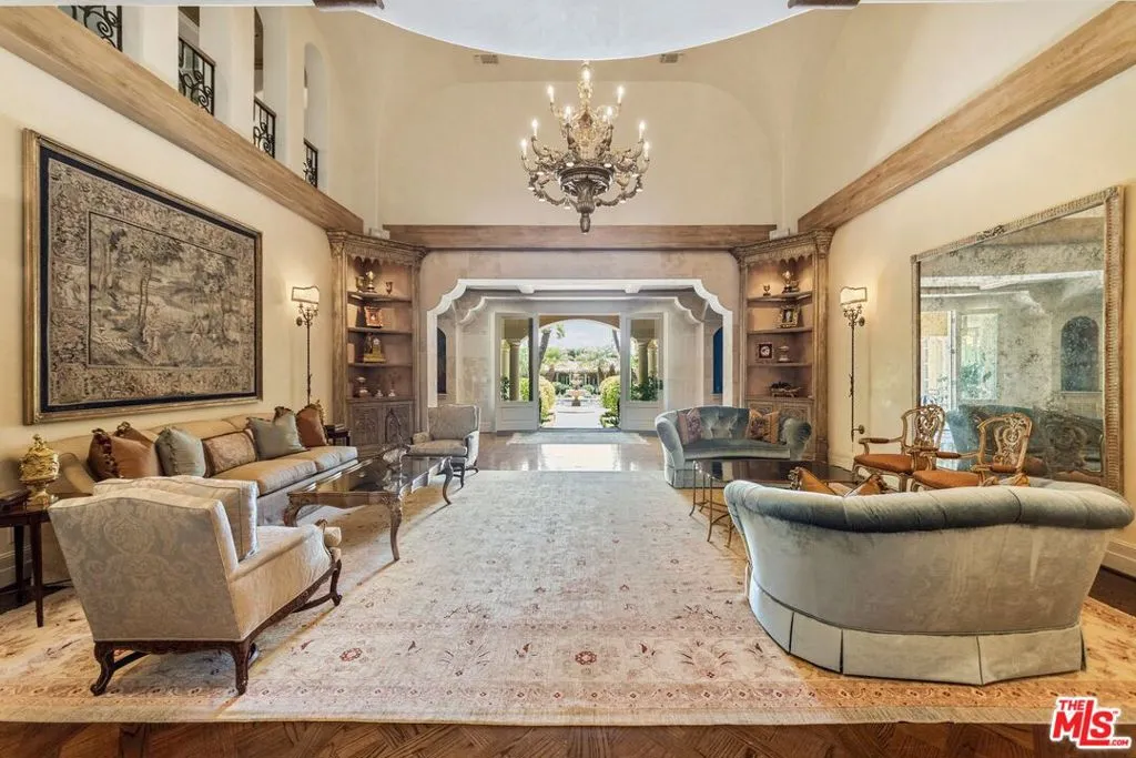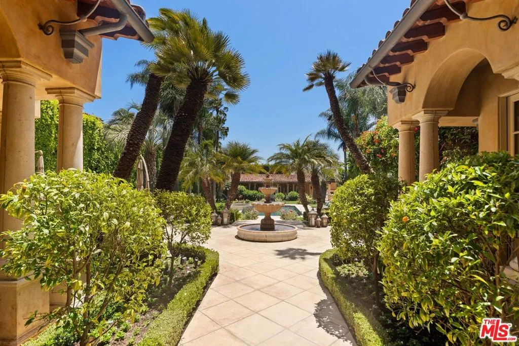 This extraordinary gated Mediterranean estate is a true sanctuary of elegance and scale. Encompassing over 31,000 square feet of impeccably manicured flat grounds, the property is enveloped by mature hedging that ensures complete privacy. Beyond the stately entrance, a dramatic two-story foyer reveals twin sweeping staircases and an array of refined living and entertaining spaces. Highlights include a formal dining room with custom wine storage, a gourmet chef’s kitchen built for culinary excellence, and a state-of-the-art home theater. Every detail reflects exceptional craftsmanship and curated designer finishes. The main residence features seven bedrooms and nine bathrooms, including two guest suites conveniently located on the first floor. Upstairs, the primary suite is a luxurious private haven, offering dual spa-inspired bathrooms and expansive dressing rooms reminiscent of a couture atelier on Rodeo Drive. A detached one-bedroom, one-bathroom guest house provides flexible accommodations for guests or staff. The grounds offer a peaceful escape, with a tranquil fountain, vibrant rose gardens, multiple loggia-covered seating areas, an outdoor fireplace, and an elegant alfresco dining pavilion designed for unforgettable gatherings beneath the California sky. With parking for eight vehicles, exceptional privacy, and close proximity to Beverly Hills’ top-rated schools, civic amenities, and world-class shopping and dining, this is one of the city’s most distinguished luxury lease offerings.