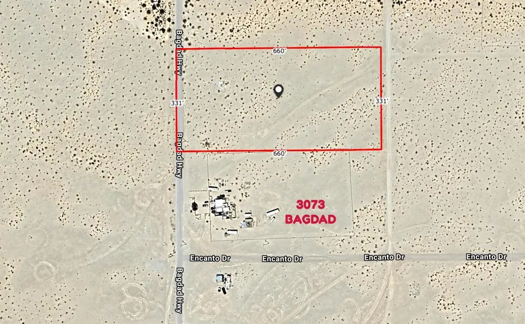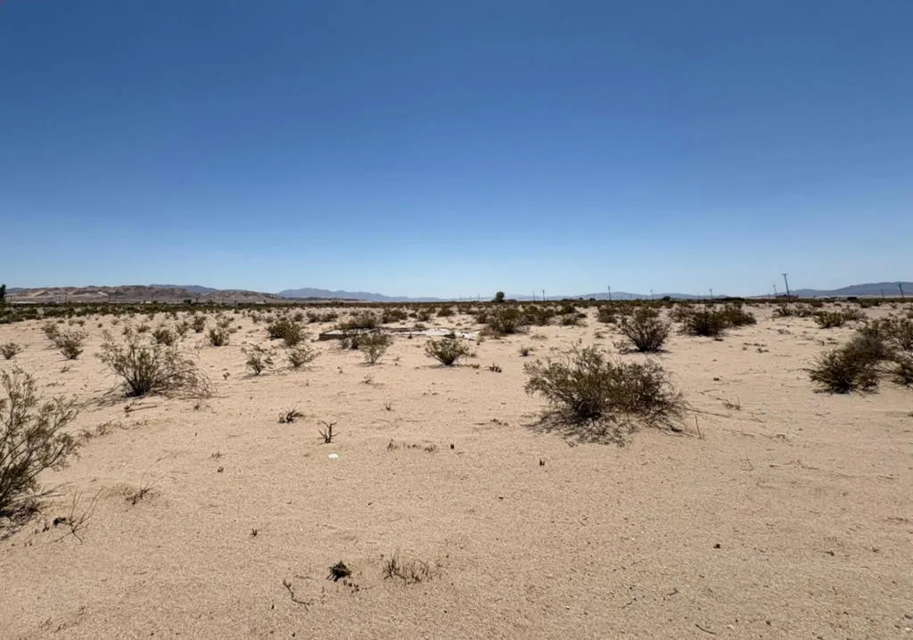 BAGDAD HIGHWAY, 29 PALMS $29,000.00: This 5 acres features a well-maintained dirt road located about a mile north of a paved road, ensuring easy accessibility. Water and power utilities are available along the street in front of the land.. It includes cement pad. Land offers beautiful views of the surrounding hills. The property is situated near the 29 Palms Marine base. A chain link fence along its southern boundary. A fire hydrant is conveniently located nearby. Might have old survey markers on land. The neighborhood boasts a variety of pleasant homes, creating a nice residential environment. Owner will carry loan of $23,200.00 with 20% down $5,800.00 @ 7% interest amortized over 5 years payable $459.39 per month + $15.00 month loan service fee. APN 0622-251-35-0000.DIRECTIONS: From Adobe Road take a right on Amboy Road to left on Bagdad Highway go up a few miles on the paved road then dirt road about a mile. Land is on right side look for FOR SALE sign. Also land is one lot north of 3073 Bagdad Hwy.(google address)