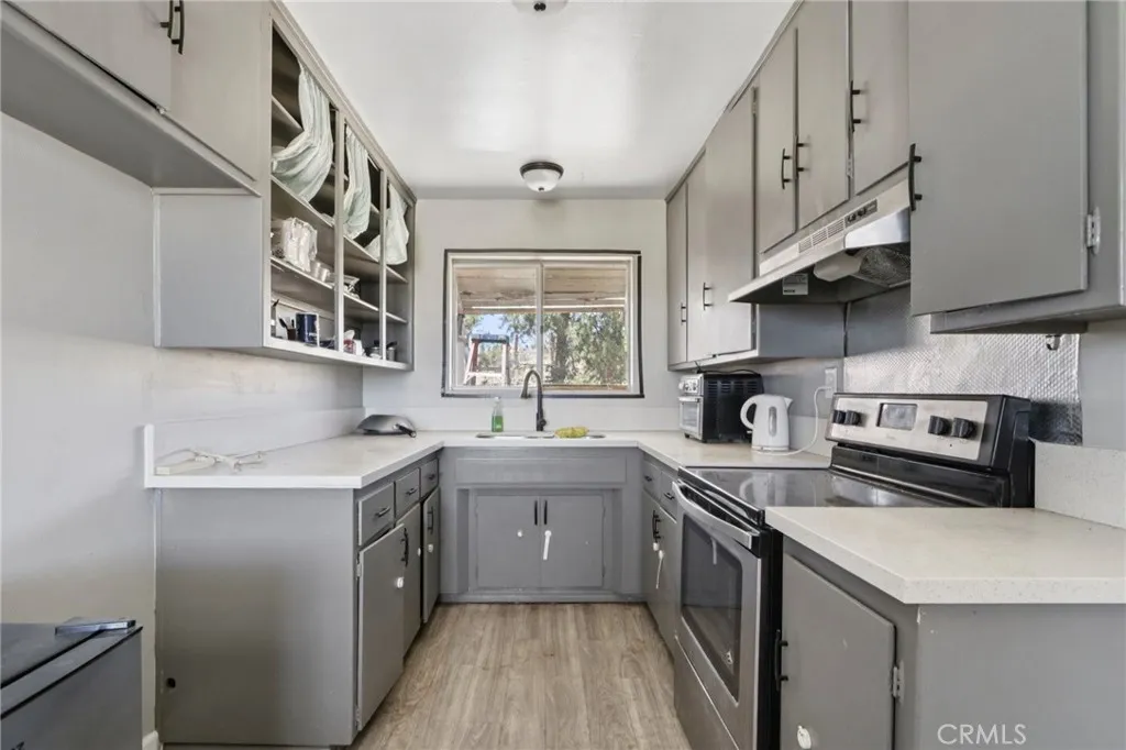 Located on a 5-acre parcel with approximately 1.2 acres fenced, this view property offers privacy, space, and functionality. The home features stainless steel appliances, an electric stove, and an electric water heater. The spacious living room includes a brick fireplace. There are two bedrooms and one full bathroom.