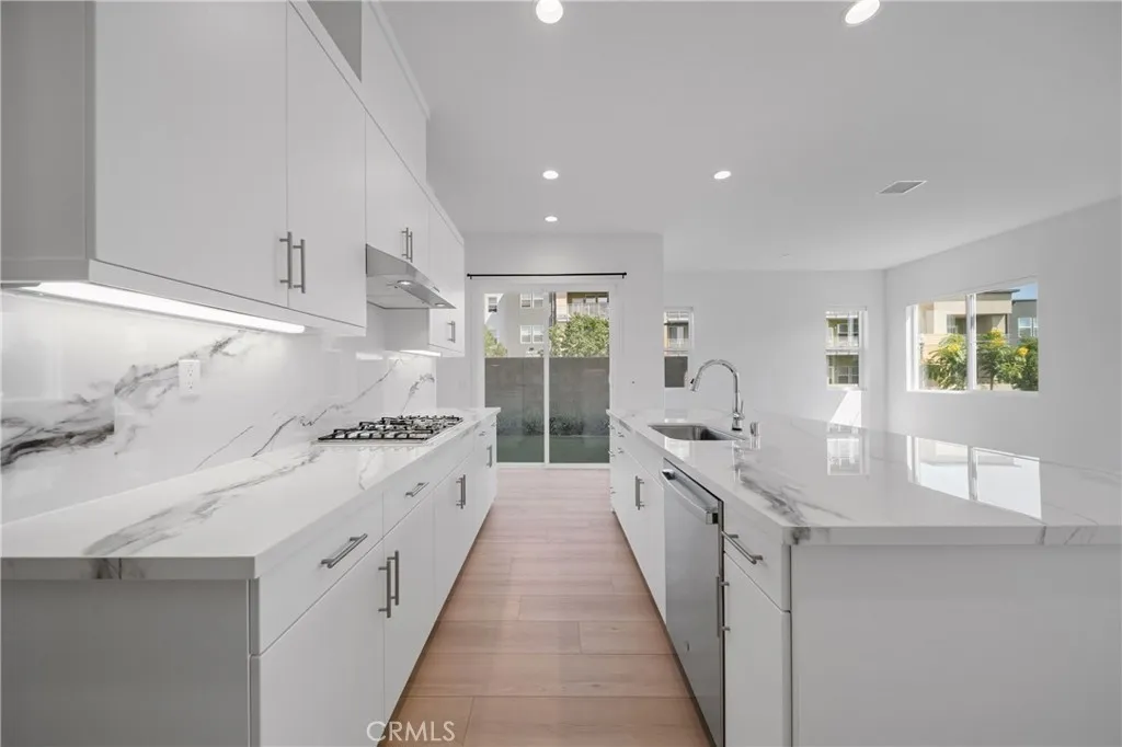 DETACHED Brand new home Located in a corner lot with steps to the pool and club house ,IRVINE SCHOOL DISTRICT, this house has the best South orientation, make every room full of sun light, the KITCHEN is on the FIRST floor , all Oak floor , kitchen countertops are upgraded with newest polished tech, the yard is very private and is finished with turf,also the first floor has a guest bedroom with its own bath.Onto the second floor , you will find huge master bedroom flooded with lights , the other two rooms are on the opposite. The third floor you will find a huge bonus room and a closet inside ready to be turned into another master suite, step to the huge balcony , you can see very nice view to spectrum and Newport Beach .All window treatment is done. Located in the very best location of great park , you can walk to all schools and club house .