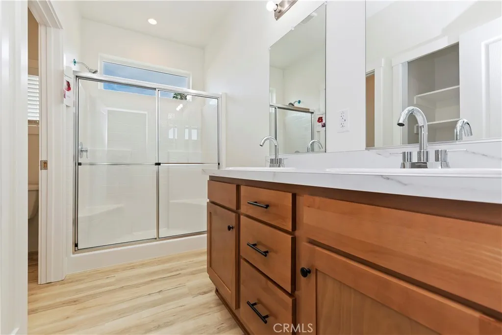 *** NEW HOME BUILT 2025*** WELCOME TO VILLAGE GROVE MOBILE HOME ESTATES FOR ACTIVE SENIORS LOOKING FOR A RETIREMENT COMMUNITY ( 55 + )WHERE YOU OWN YOUR OWN LOT ( NOT A RENTAL PARK ) IT ALL STARTS WITH GOOD CURB APPEAL, INVITING FRONT PORCH, NEW COLOR DESIGN EXTERIOR AND DROUGHT RESISTANT LANDSCAPE THAT MAKES THIS A MUST SEE HOME WITH APROX 1387 SQ FT UNDER ROOF WITH 3 BEDROOMS 2 BATHROOMS. SPACIOUS FLOORPLAN WITH 9 FT CEILINGS,GREATROOM,SEPARATE DINING AREA, WELL DESIGNED WORK ISLAND KITCHEN WITH LOTS OF CABINETRY,PANTRY,STAINLESS APPLIANCE AND PLENTY OF COUNTER SPACE FOR ENTERTAINING FAMILY AND FRIENDS.THE LAUNDRY AREA WITH EXTRA STORAGE IS CONVENIENTLY LOCATED WITH DIRECT CARPORT ACCESS. SPACIOUS MAIN BEDROOM AND ADJOINING BATHROOM FEATURES DUAL SINK VANITY AND WALK IN CLOSET. THIS NEW HOME IS ON A PREMIUM LOT WITH 2 STORAGE SHEDS THE LARGER WOOD ONE IS 10 X 12 WITH EXTRA HIGH CEILING FOR EXTRA STORAGE. FRUIT TREES AND GARDEN AREA FOR THOSE WHO ENJOY THE OUTDOORS.PLEASE VIEW THE PICTURES OF ALL THE AMENITIES THE HOA HAS TO OFFER POOL SPA GAME ROOM GREEN BELT AND WALKING TRAILS. WALKING DISTANCE TO SHOPPING CENTER.RV PARKING AREA ON PREMISE ( WHEN SPACE AVAILABLE ) CLICK ON THE PICTURES AND ENJOY YOUR NEXT NEW HOME.