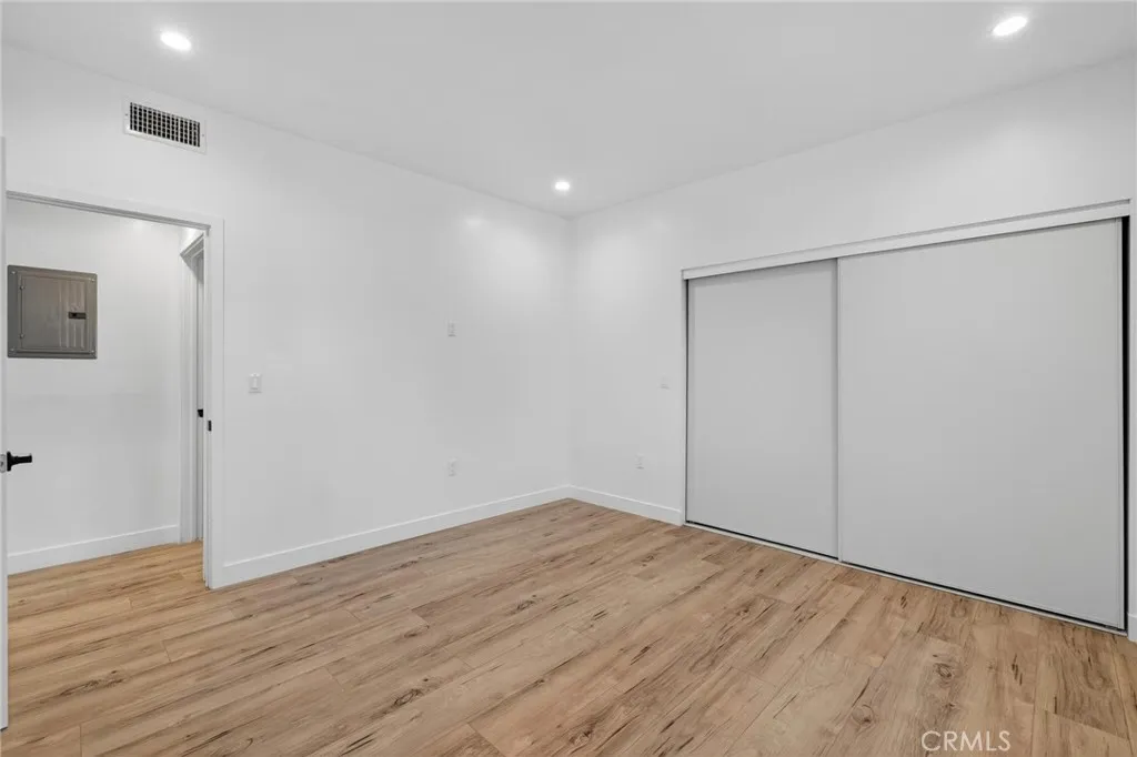 Beautifully remodeled two-bedroom, one bath unit in a great area of Van Nuys. Features include wood floors throughout, heating and air conditioning, new appliances included, private washer and dryer in the unit, double pane windows for comfort and quiet and two private tandem parking spaces.